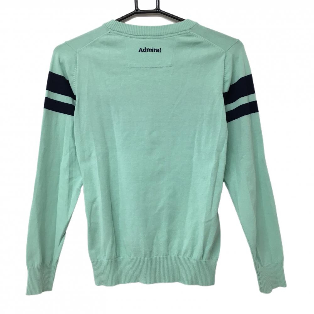 アドミラル セーター ライトグリーン×ネイビー 胸元ロゴ コットン混 ニット レディース M ゴルフウェア Admiral