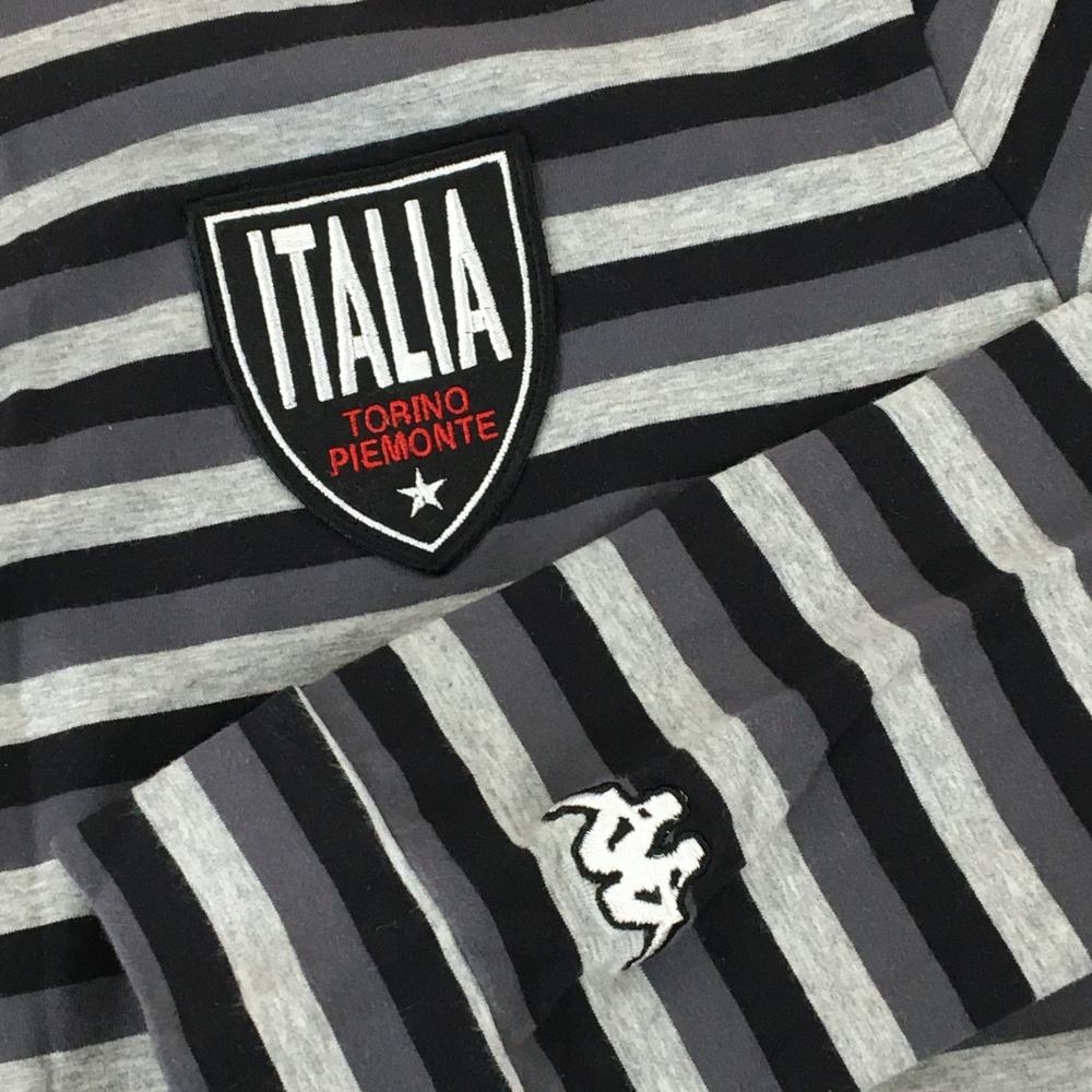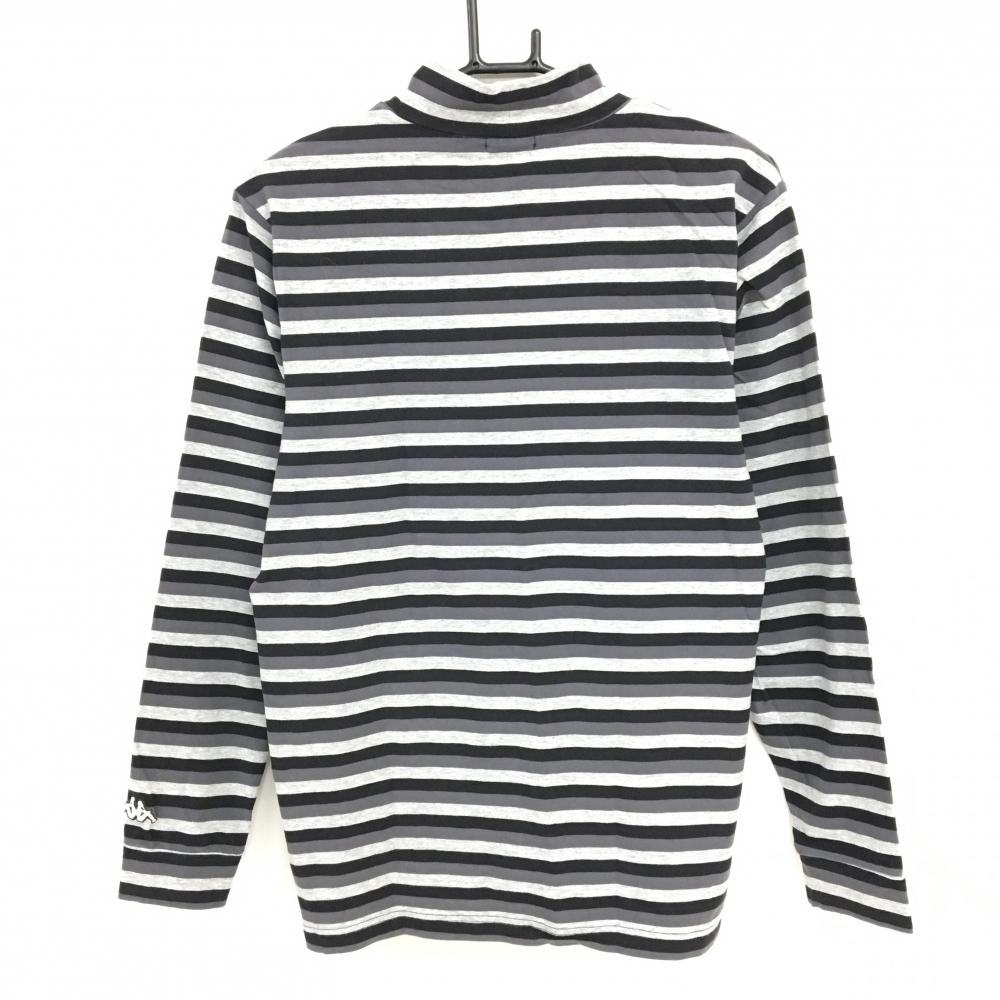 【美品】カッパ 長袖ハイネックシャツ グレー×黒 ボーダー メンズ L ゴルフウェア Kappa