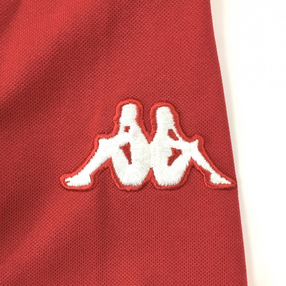 【超美品】カッパ 半袖ポロシャツ レッド×白 ボタンダウン 袖ロゴ メンズ L ゴルフウェア Kappa
