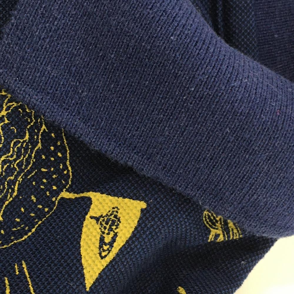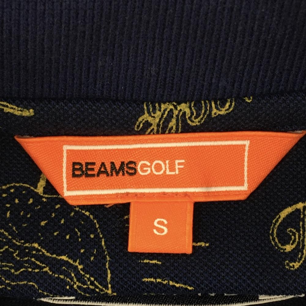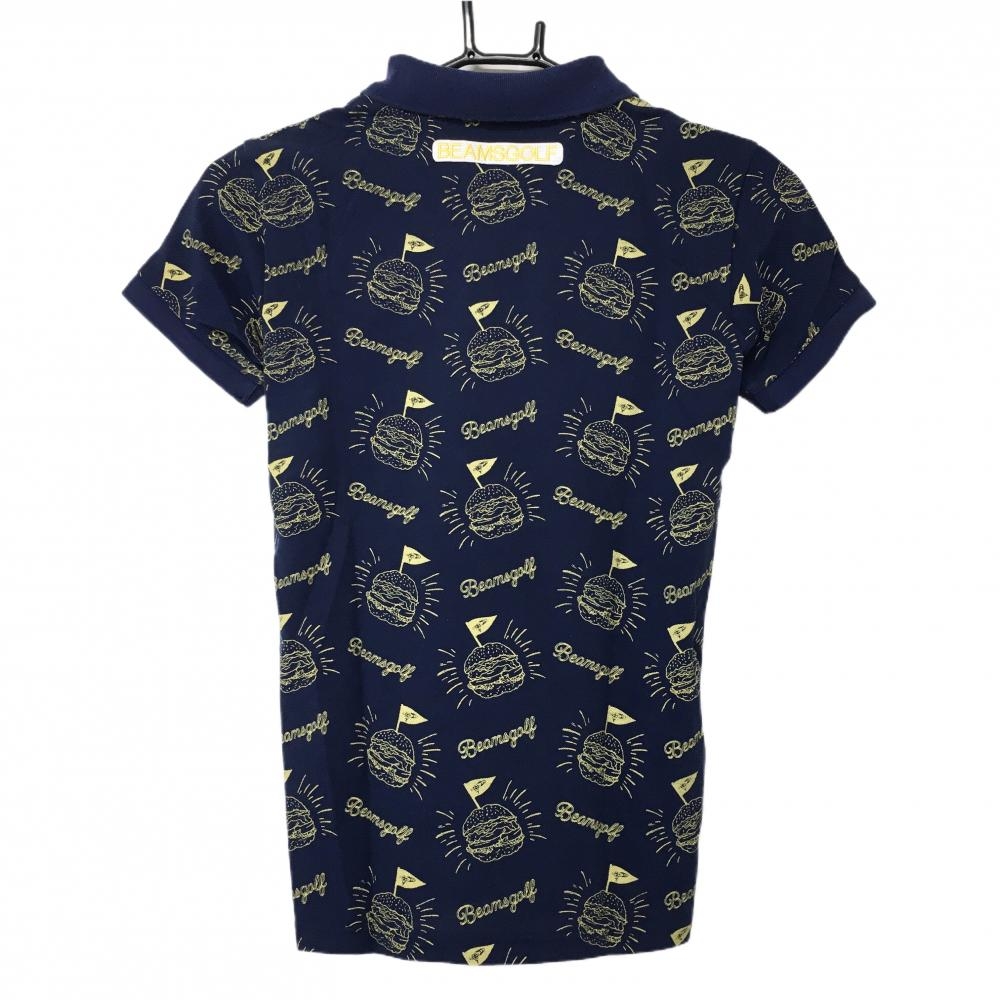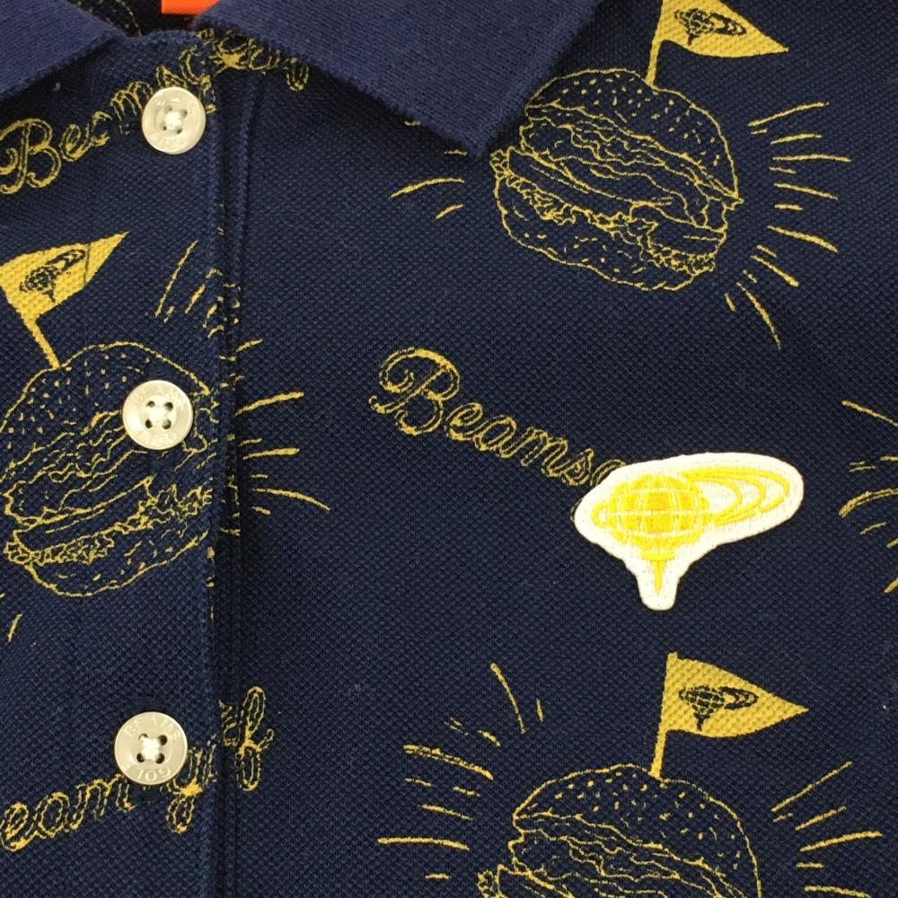 【美品】ビームスゴルフ 半袖ポロシャツ ネイビー×イエロー バーガー柄 ロゴワッペン レディース S ゴルフウェア BEAMS GOLF
