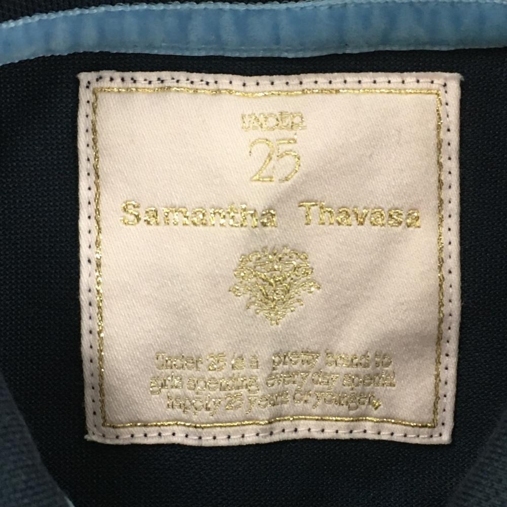サマンサタバサ UNDER25 半袖ポロシャツ ネイビー×ライトブルー ベア ロゴプリント レディース S ゴルフウェア Samantha Thavasa