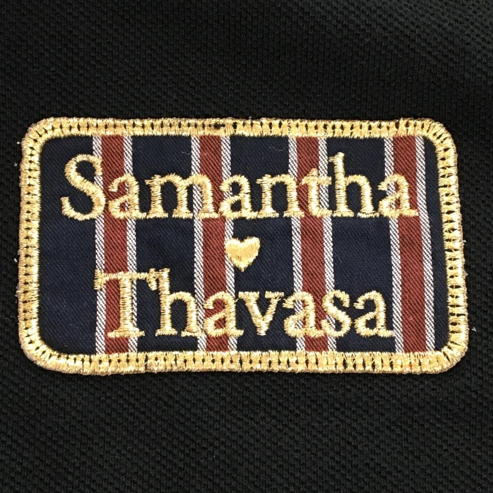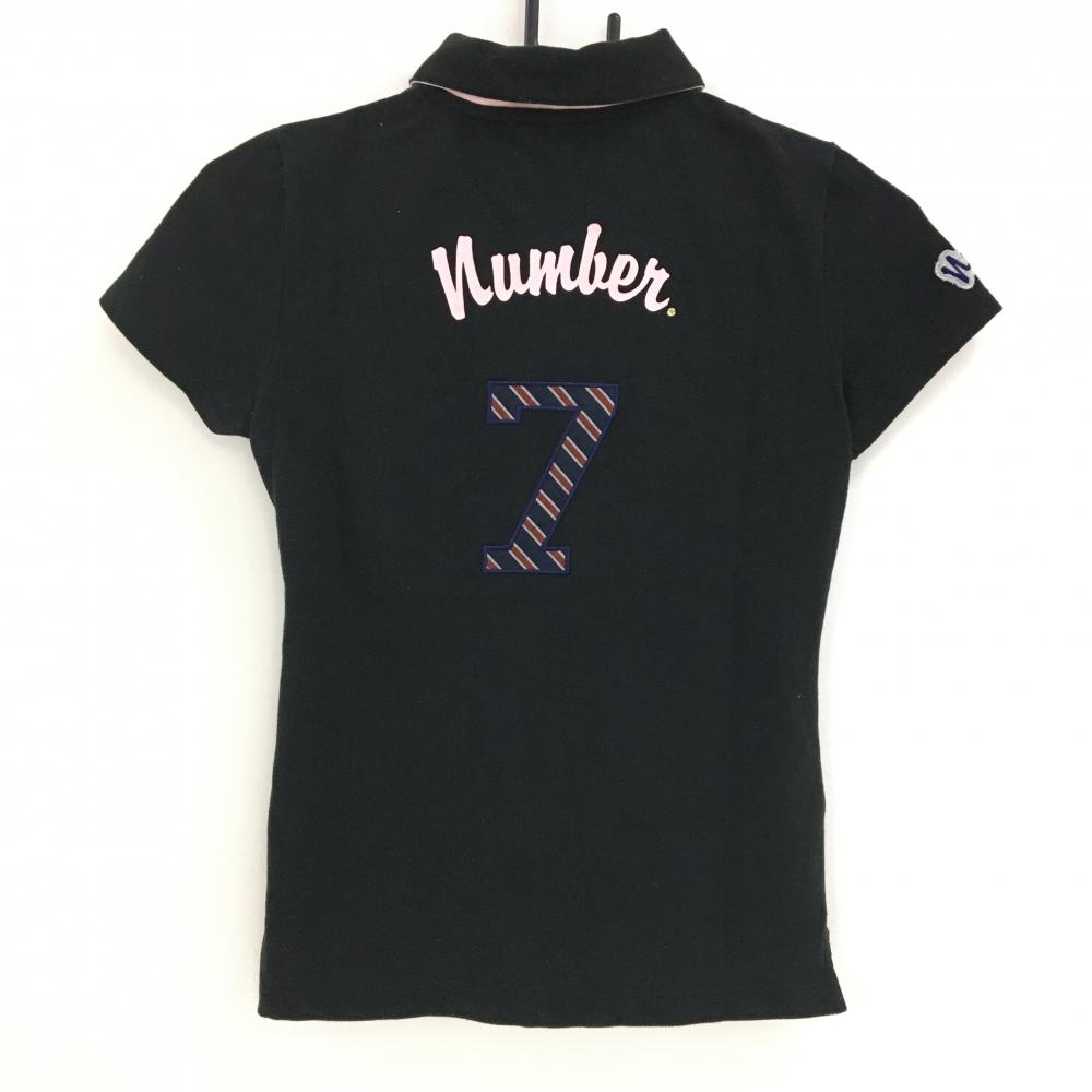【美品】サマンサタバサ No.7 半袖ポロシャツ 黒 後ろ一部斜めストライプ レディース 36(S) ゴルフウェア Samantha Thavasa