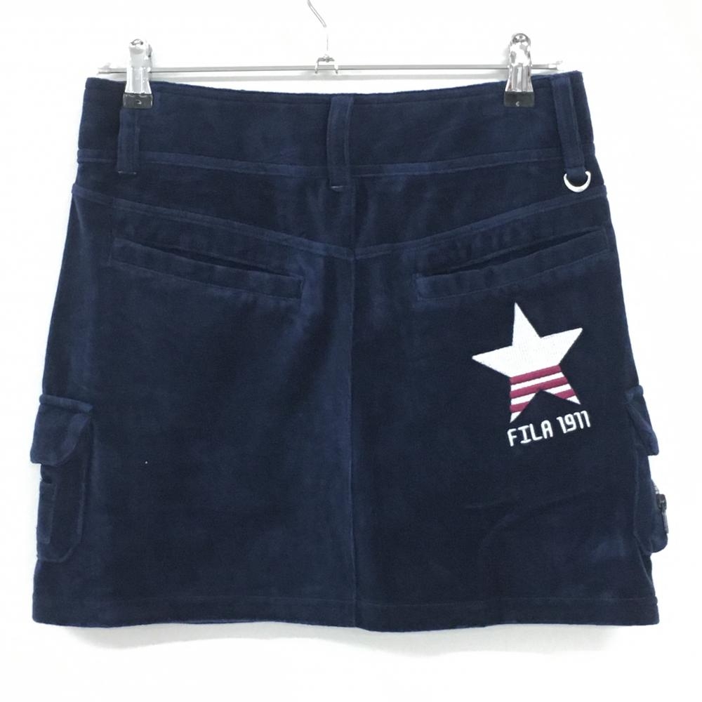 フィラゴルフ カーゴスカート ネイビー ベロア風 ティー装着可 星刺しゅう レディース M ゴルフウェア FILA GOLF