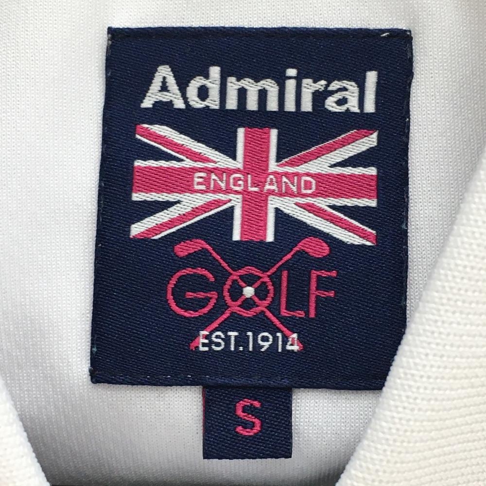 【超美品】アドミラル 半袖ポロシャツ 白×ブルー×ピンク ビッグプリント レディース S ゴルフウェア Admiral