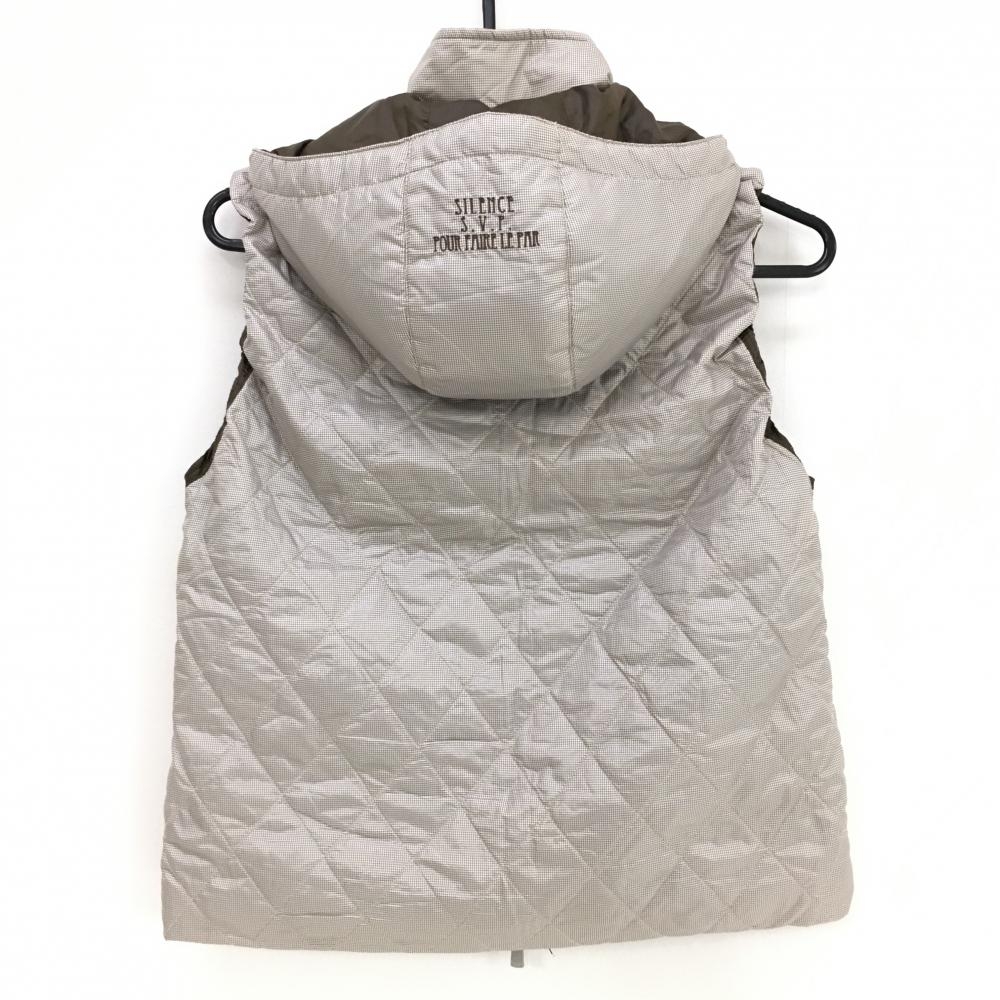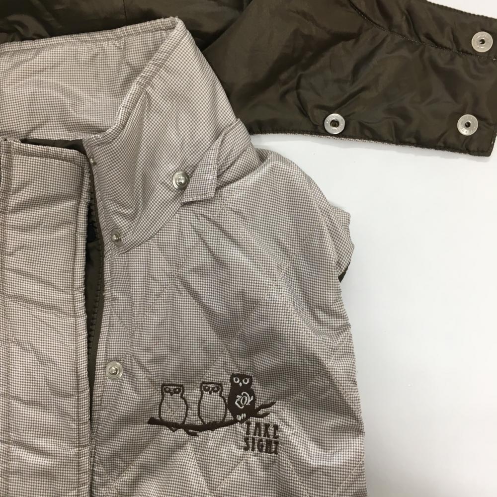 【美品】ゾーイ 2WAY中綿ベスト ブラウン×白 細チェック フード着脱可 レディース 40(L) ゴルフウェア ZOY