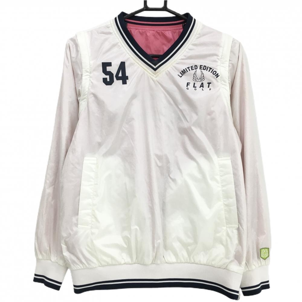 フラットゴルフ 4WAYリバーシブルスニード ピンク×ネイビー Vネック 袖着脱可 レディース L ゴルフウェア FLATGOLF