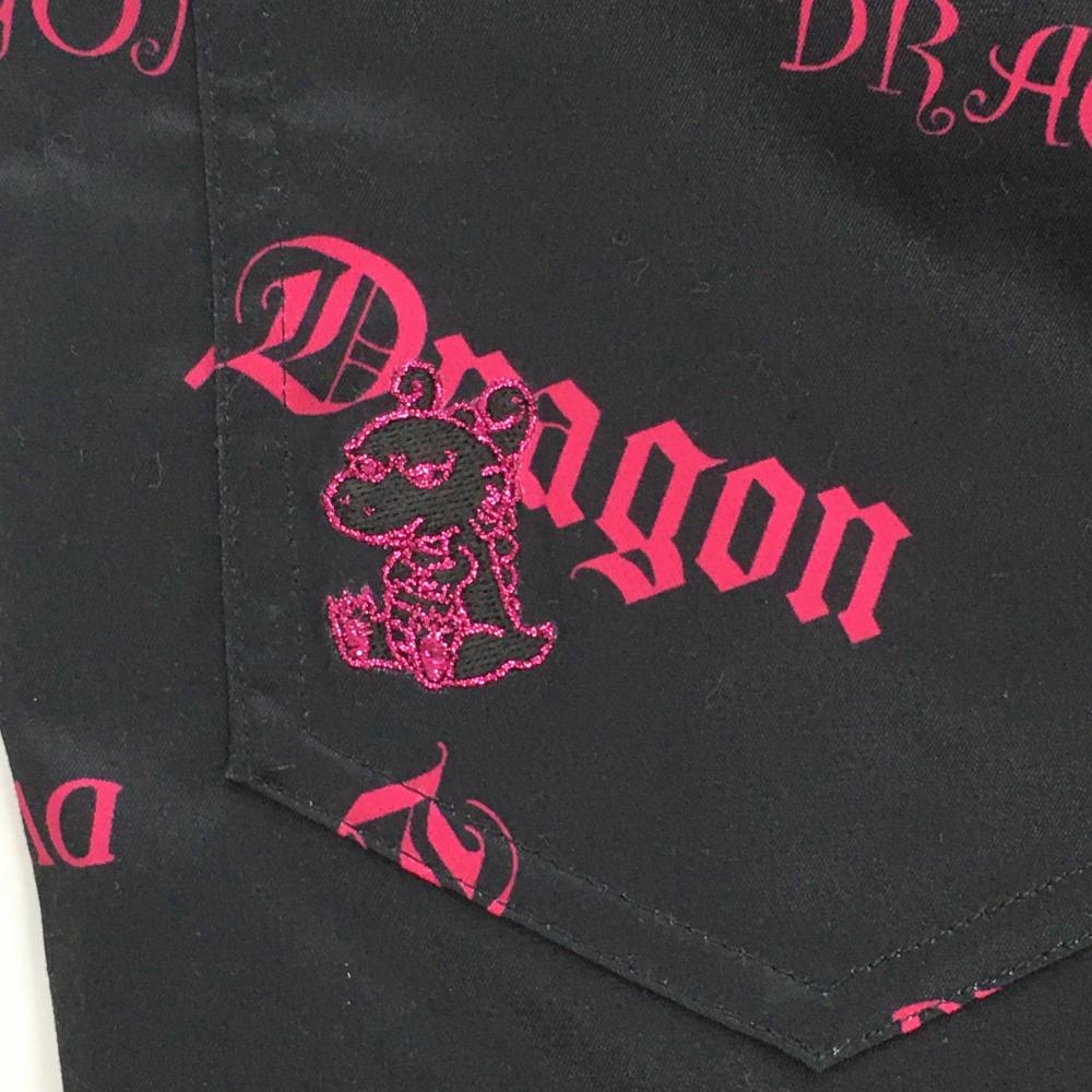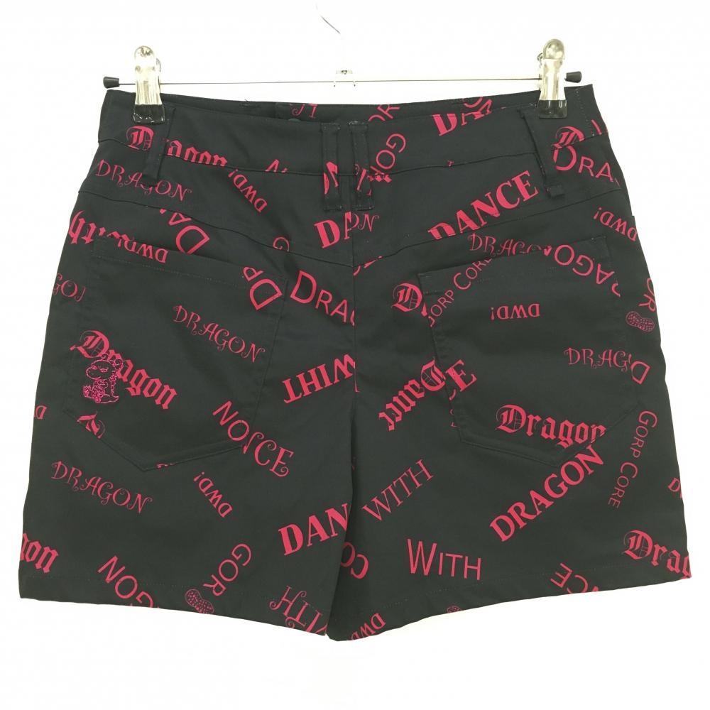 【超美品】ダンスウィズドラゴン キュロットスカート 黒×ピンク ロゴ総柄 レディース 2(M) ゴルフウェア Dance With Dragon
