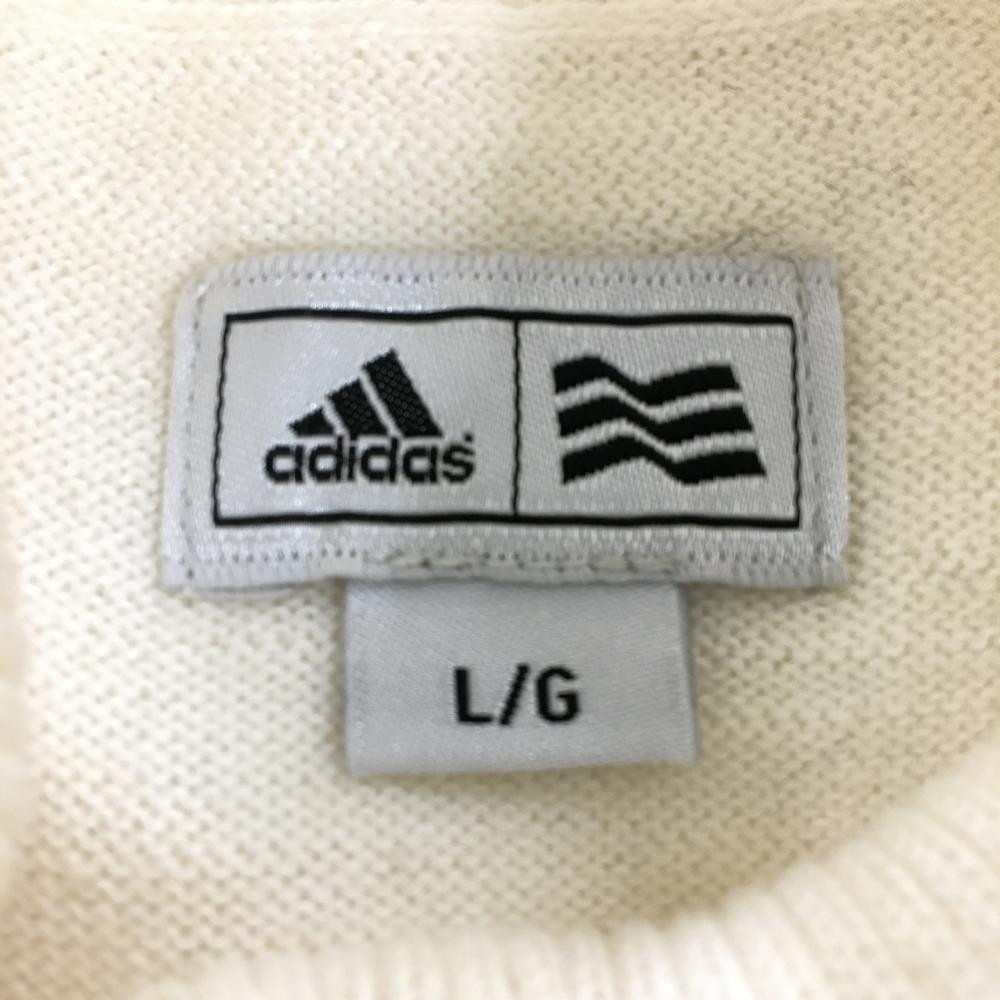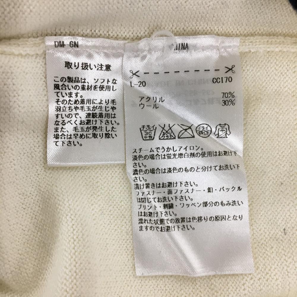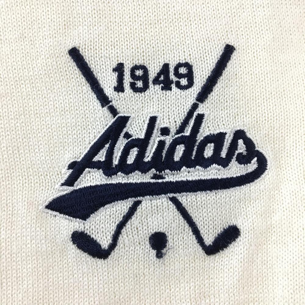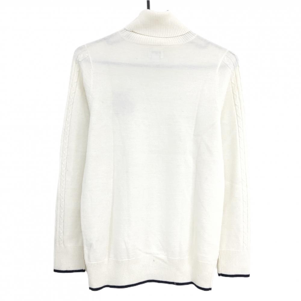 【美品】アディダス タートルネックセーター 白×ネイビー ロゴ刺しゅう ウール混 ニット レディース L/G ゴルフウェア adidas