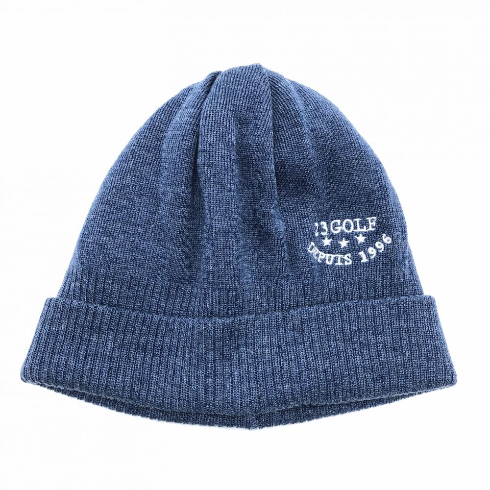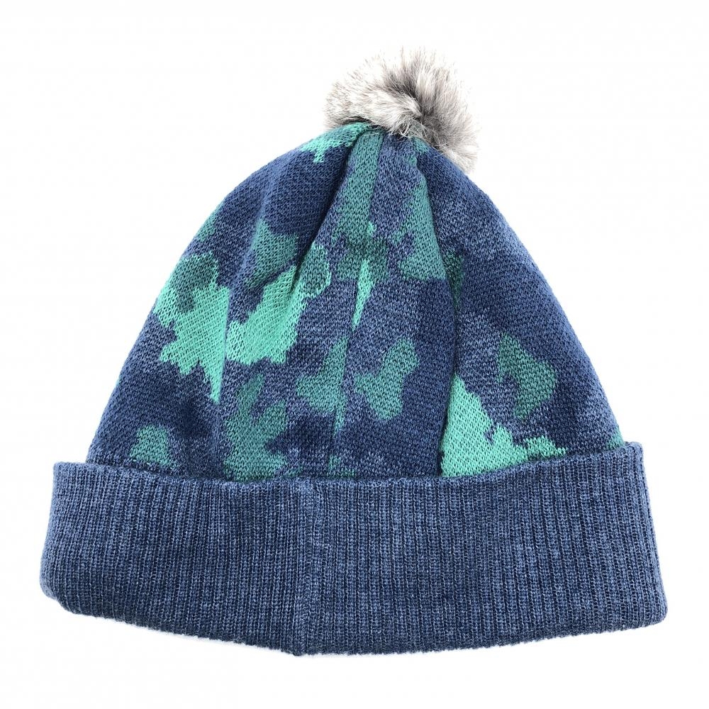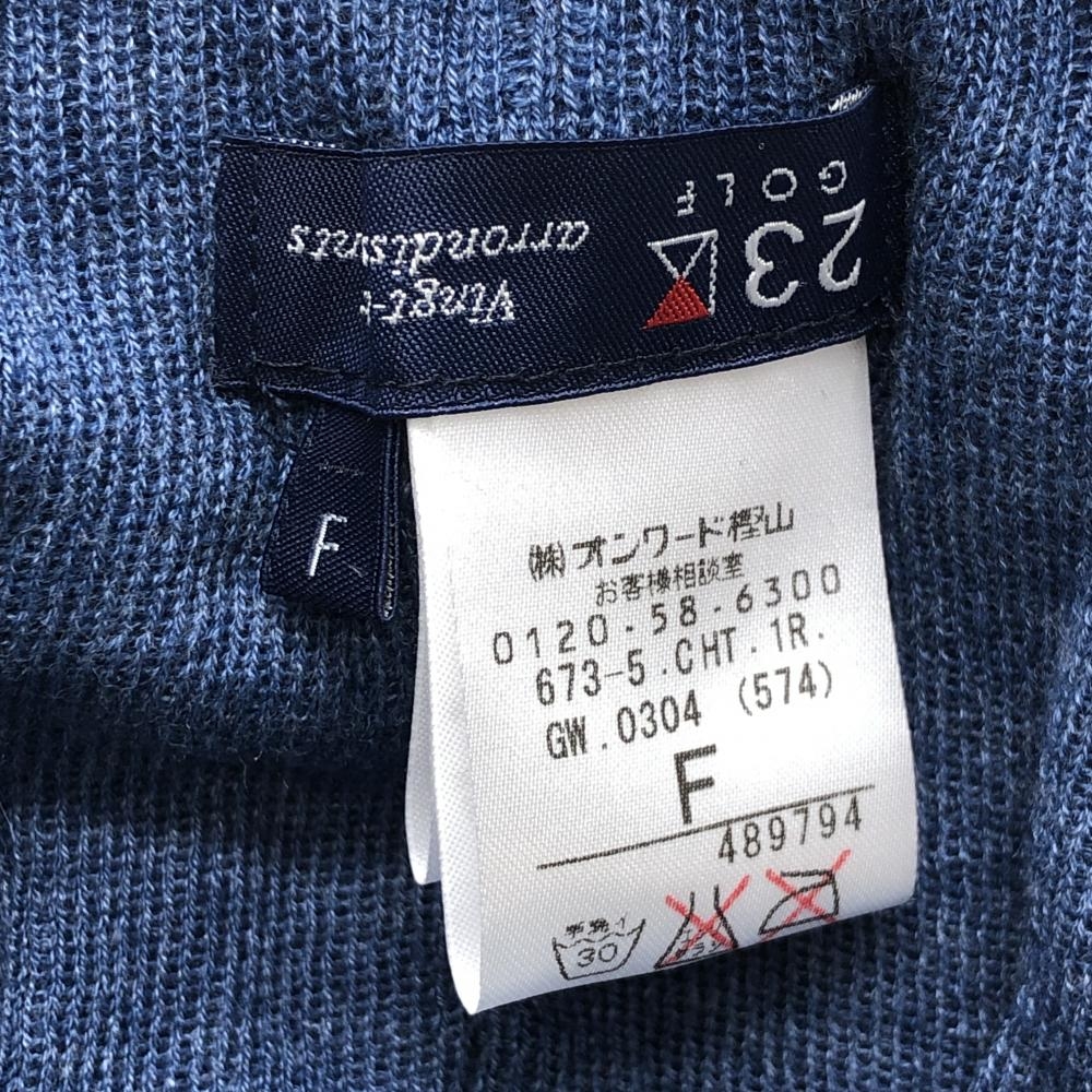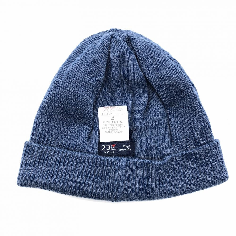 【超美品】23区ゴルフ リバーシブルニット帽 ブルー系×ブルーグリーン 総柄 アクリル混 レディース F ゴルフウェア 23区