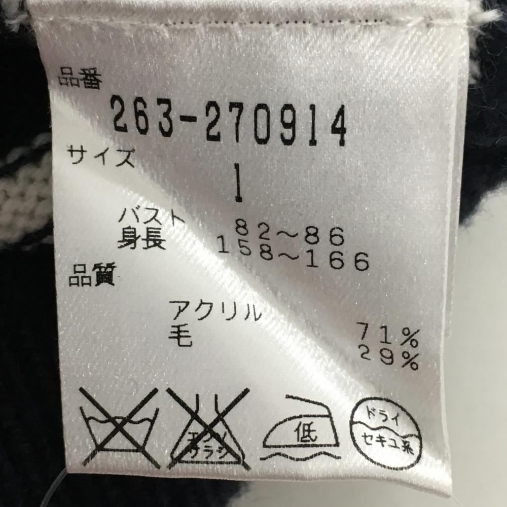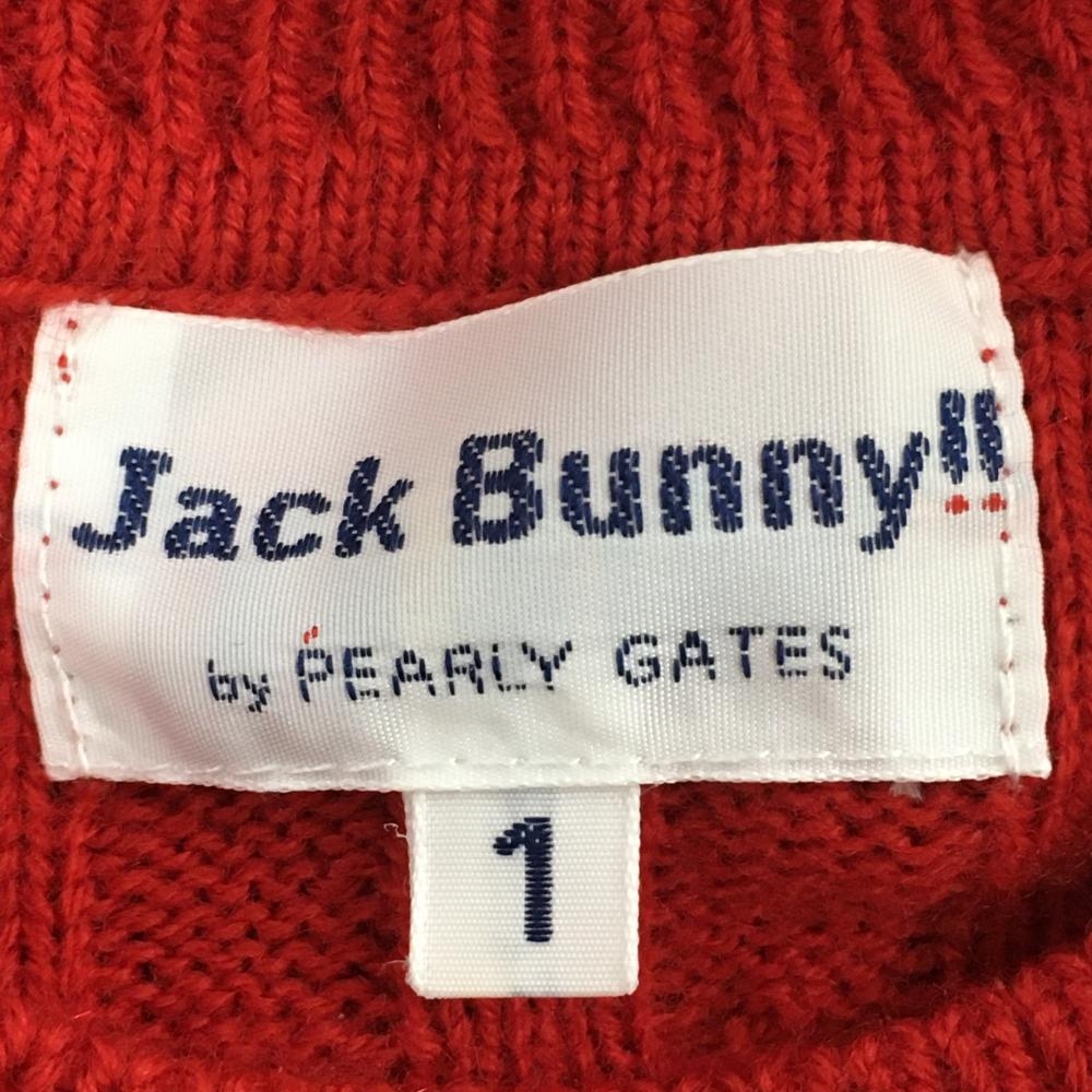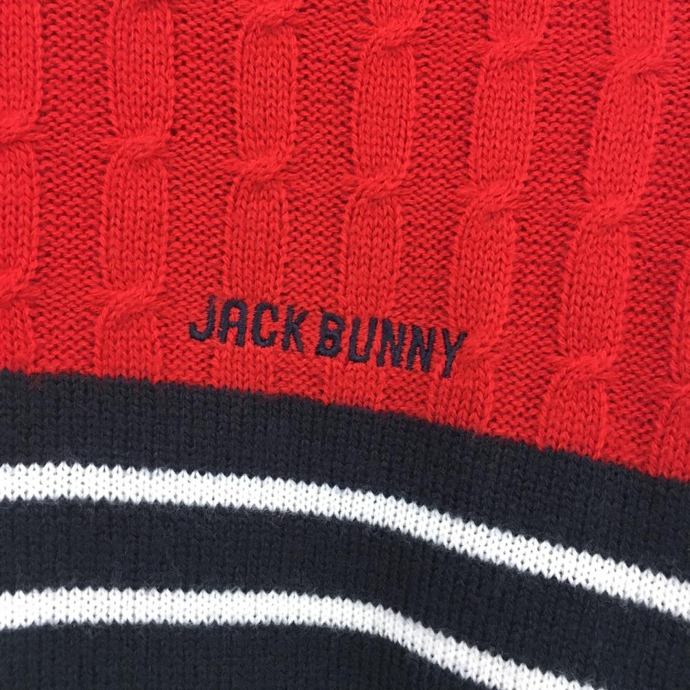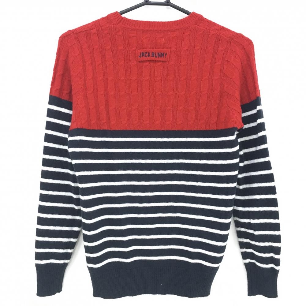 【超美品】ジャックバニー セーター レッド×ネイビー×白 上ケーブル編み 下ボーダー ウール混 レディース 1(M) ゴルフウェア Jack Bunny