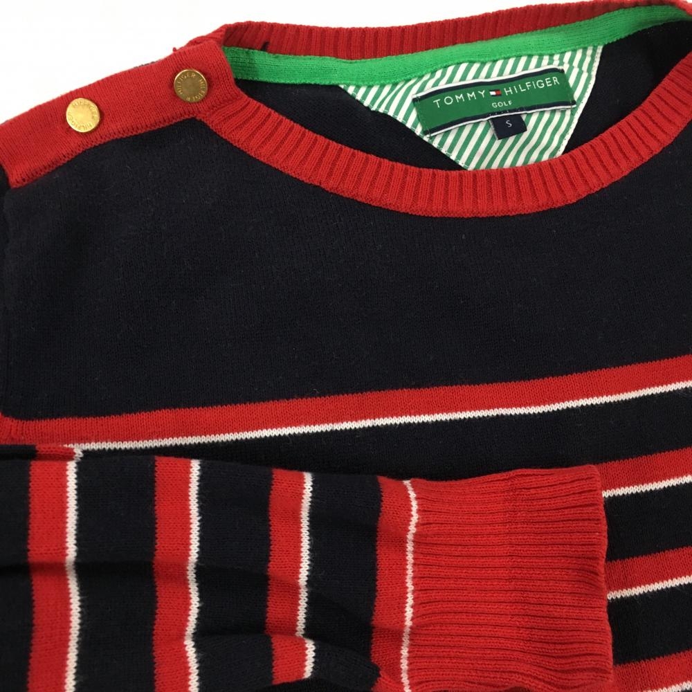 【美品】トミーヒルフィガーゴルフ セーター ネイビー×レッド×白 ボーダー レディース S ゴルフウェア Tommy Hilfiger Golf
