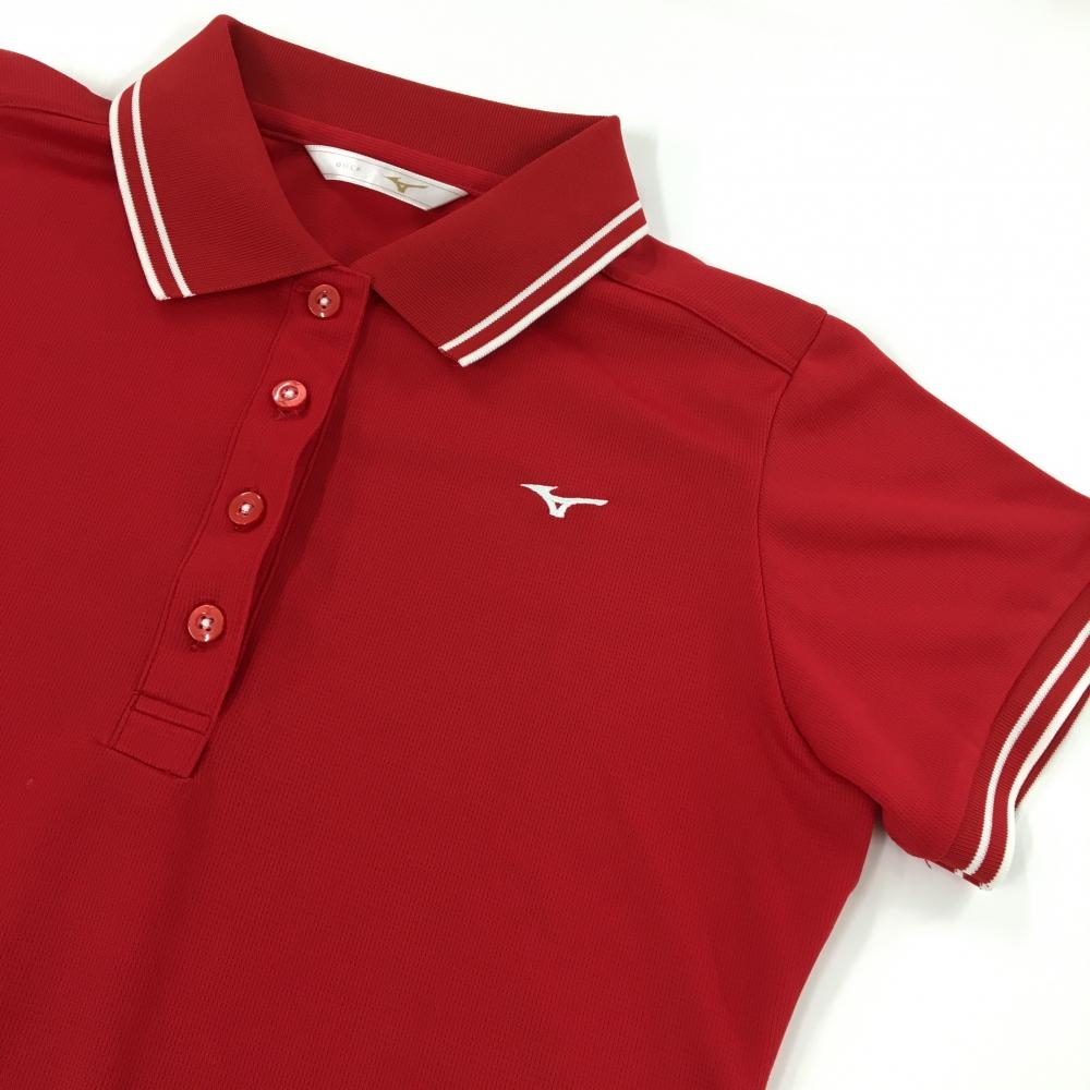 【超美品】ミズノ 半袖ポロシャツ レッド ロゴ刺しゅう 襟・袖口白ライン レディース M ゴルフウェア MIZUNO