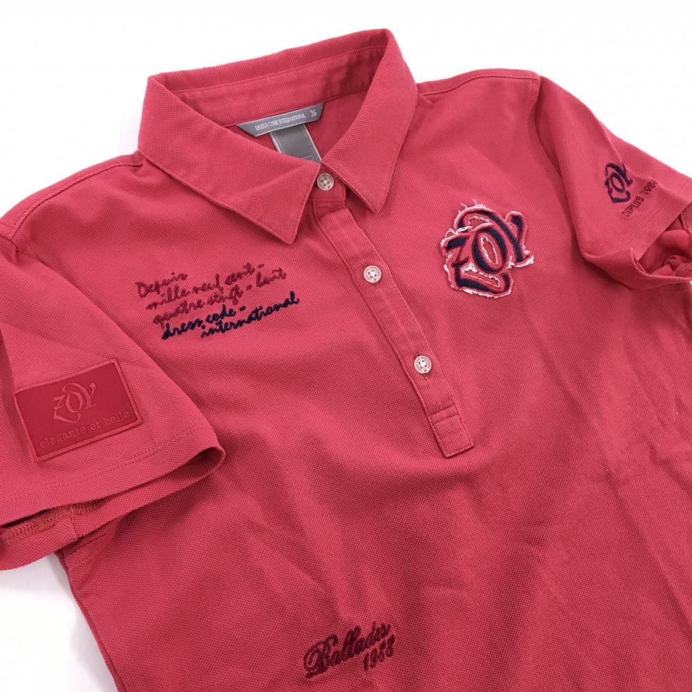 【美品】ゾーイ 半袖ポロシャツ ピンク ロゴ刺しゅう レディース 36(S) ゴルフウェア ZOY