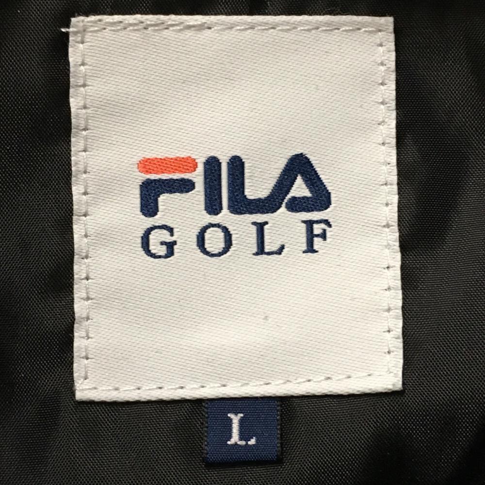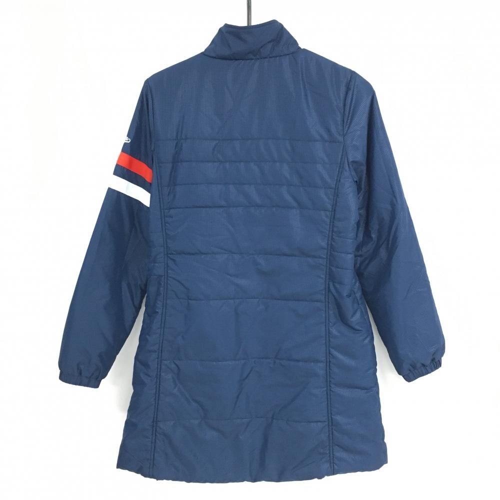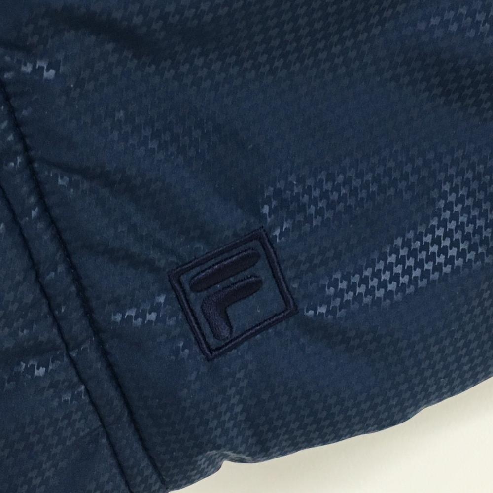 【超美品】フィラゴルフ 中綿ロングジャケット ネイビー 千鳥格子地模様 袖ライン レディース L ゴルフウェア FILA GOLF