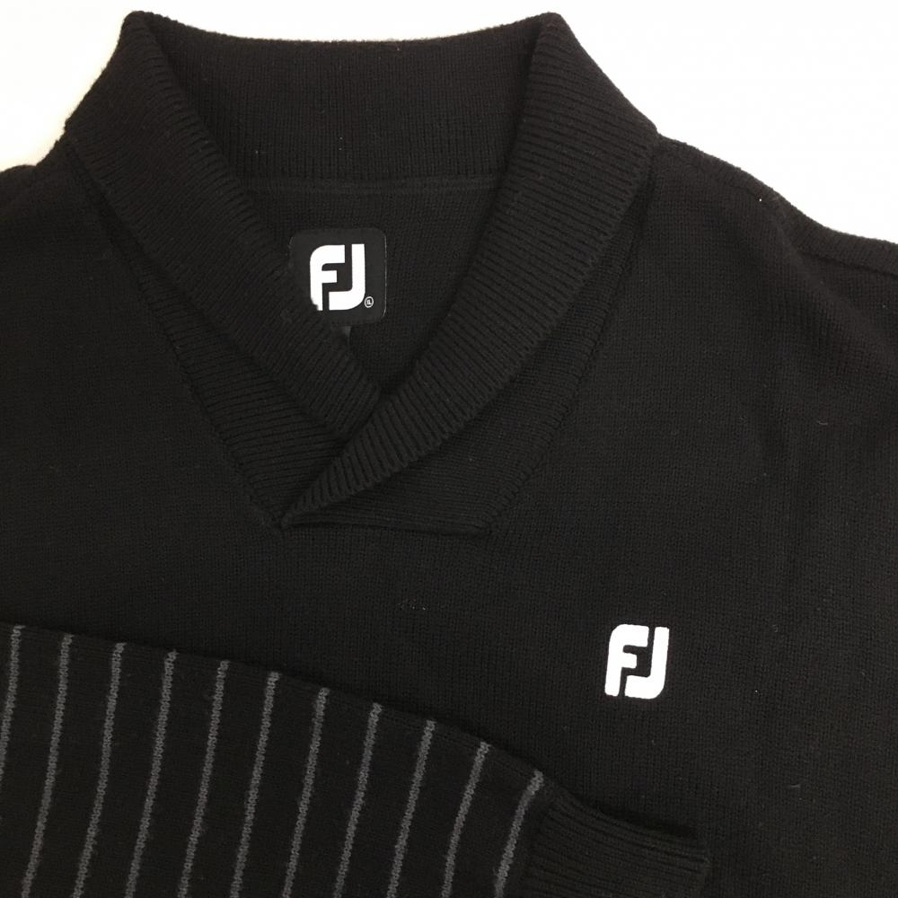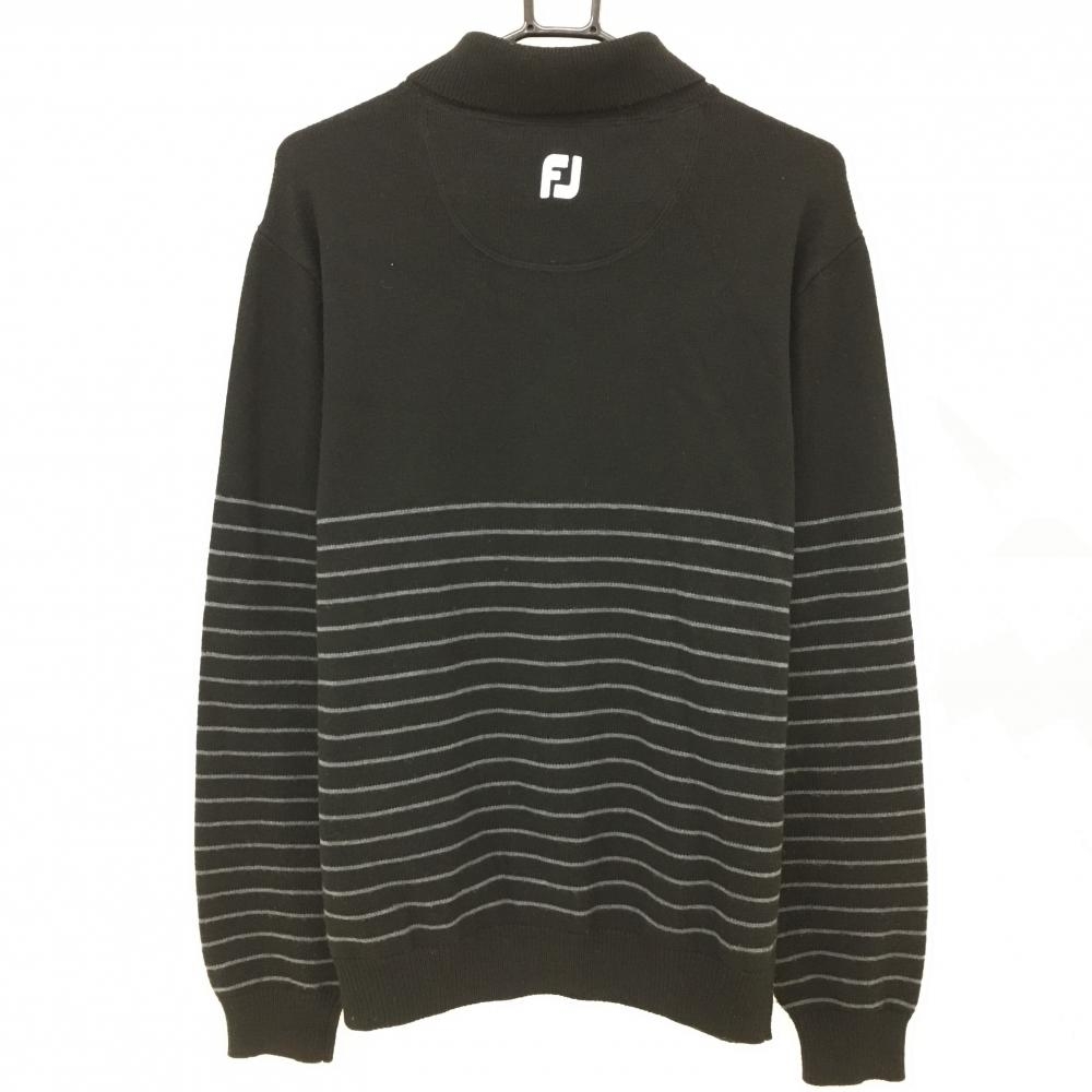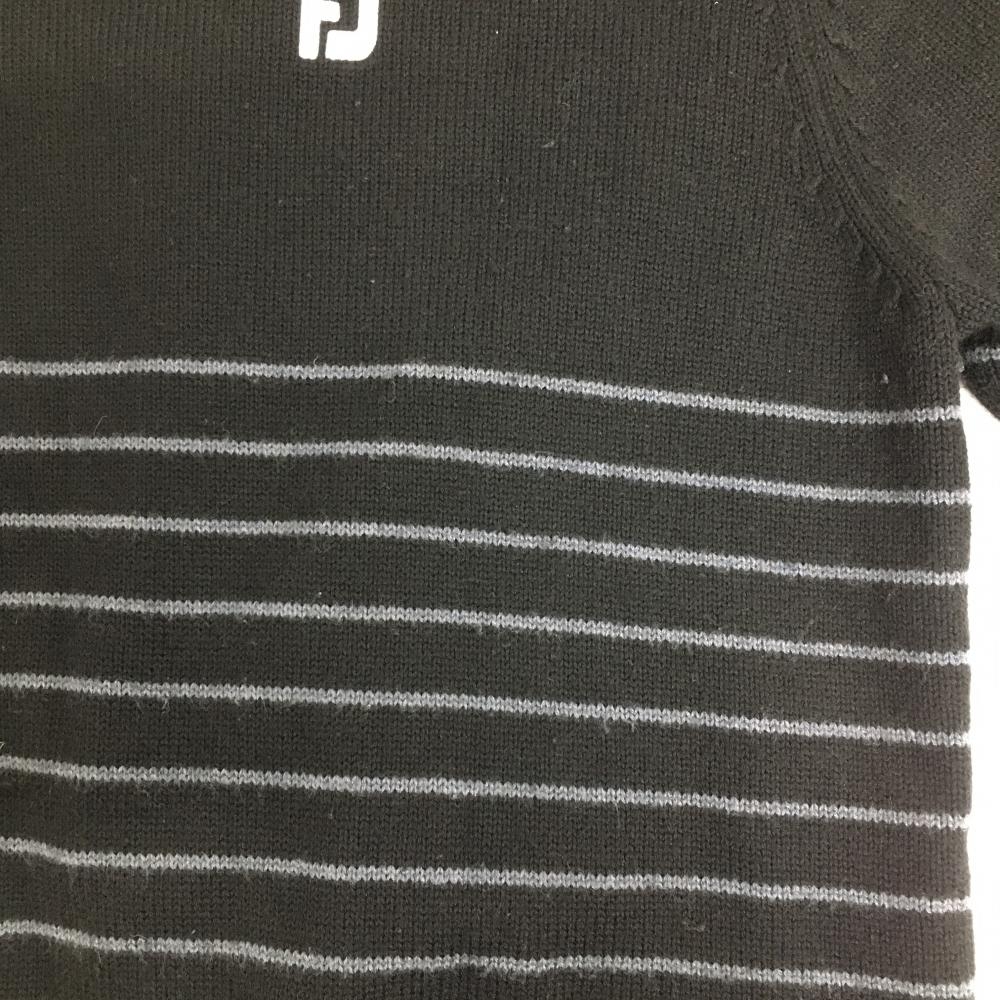 フットジョイ 襟付セーター 黒×グレー ボーダー ニット ウール混 メンズ XL ゴルフウェア FootJoy