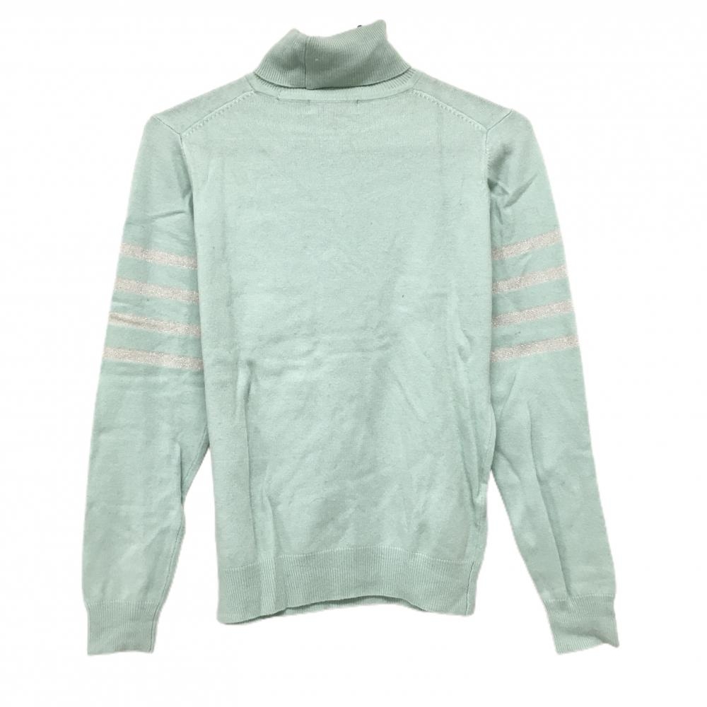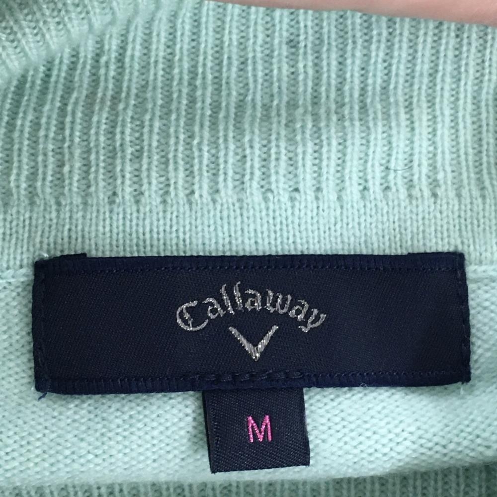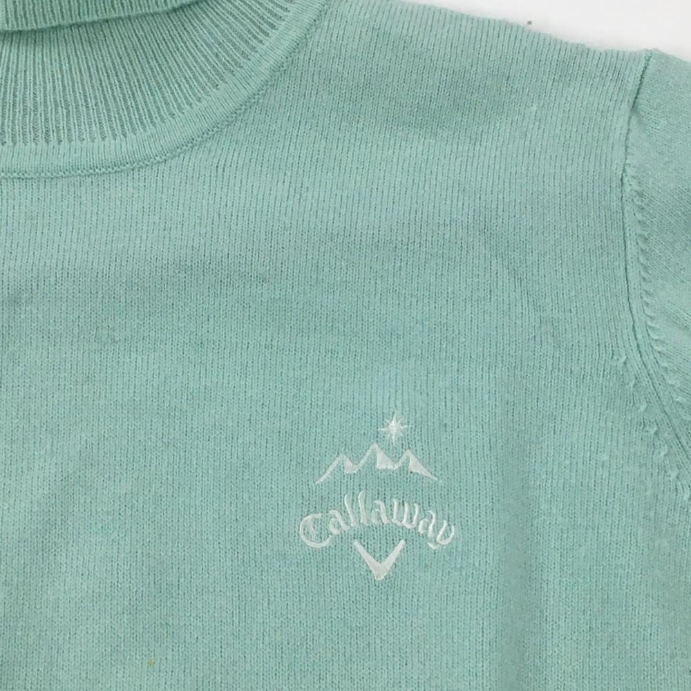 キャロウェイ タートルネックセーター ライトブルー×シルバー 袖ボーダー ニット ウール混 レディース M ゴルフウェア Callaway