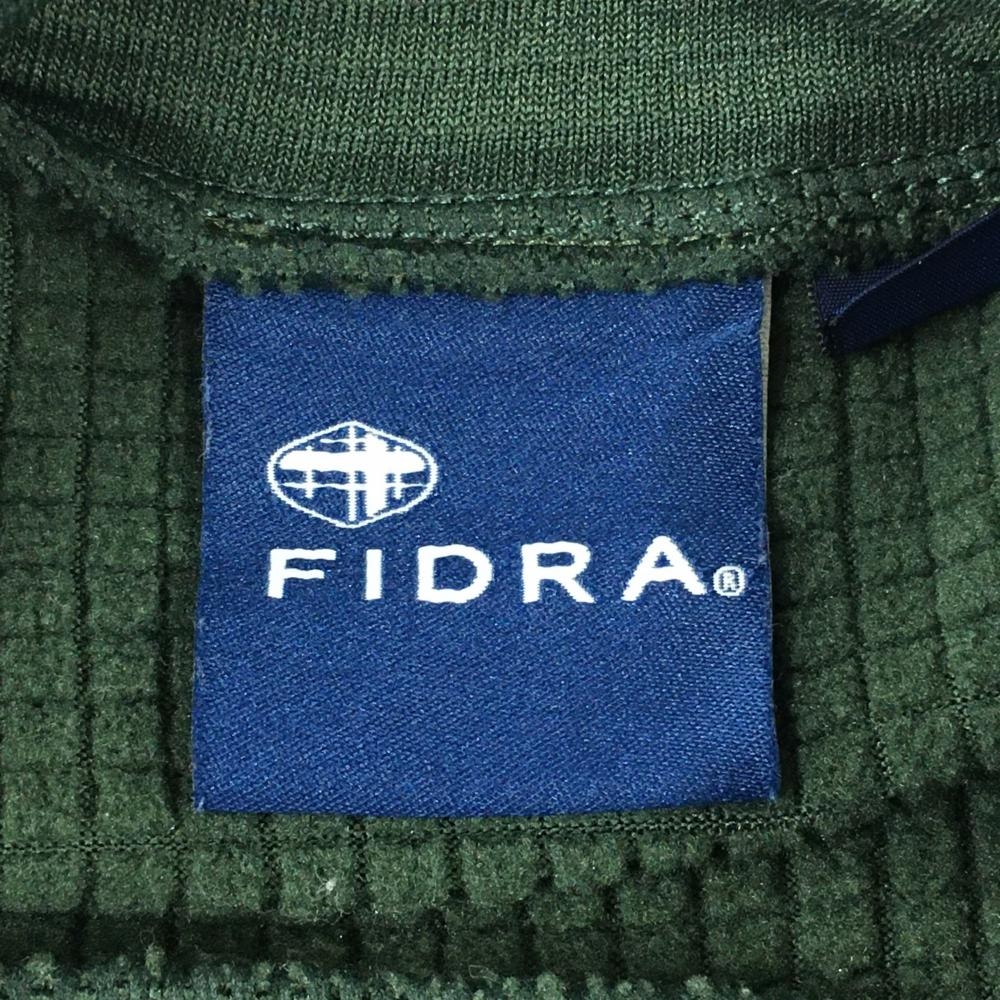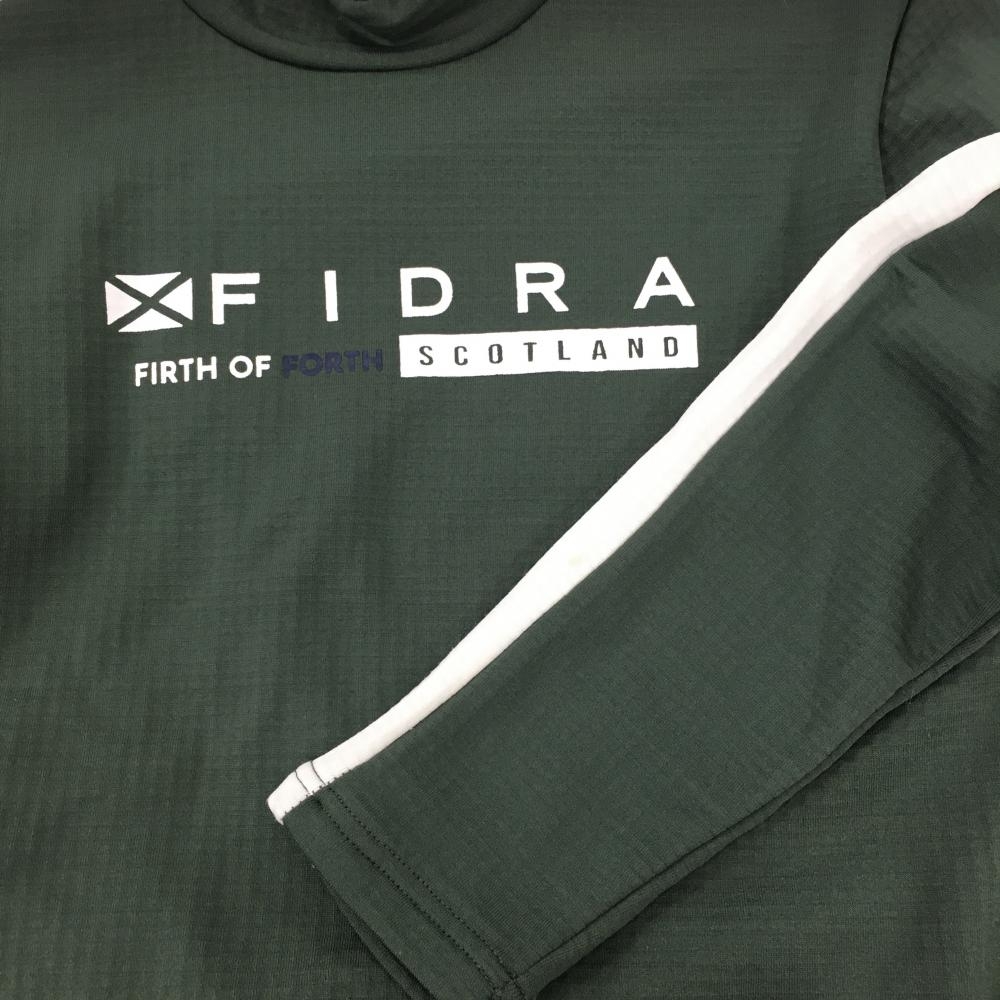 【超美品】フィドラ 長袖ハイネックシャツ グリーン系×白 裏微起毛 ロゴプリント レディース S/P ゴルフウェア FIDRA