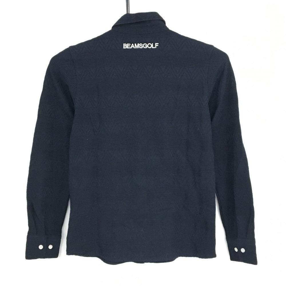 【超美品】ビームスゴルフ 長袖シャツ ネイビー 総柄織生地 レディース S ゴルフウェア BEAMS GOLF