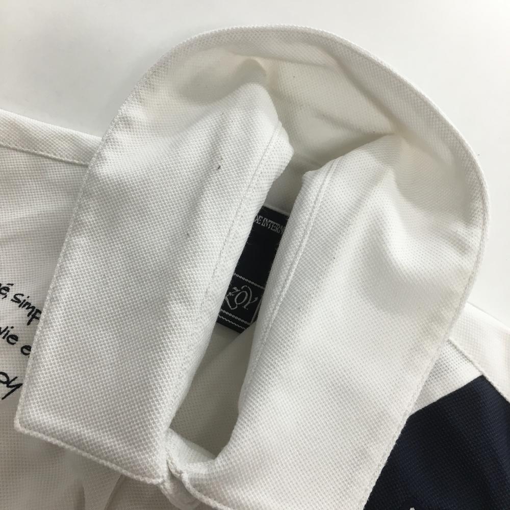 ゾーイ 長袖ポロシャツ 白×ネイビー ロゴ刺しゅう 襟・袖口汚れ レディース 36(S) ゴルフウェア ZOY