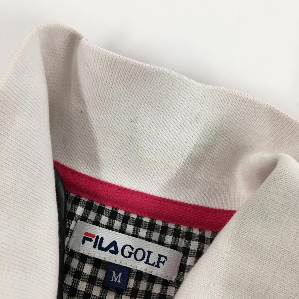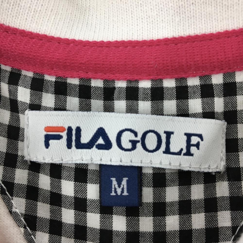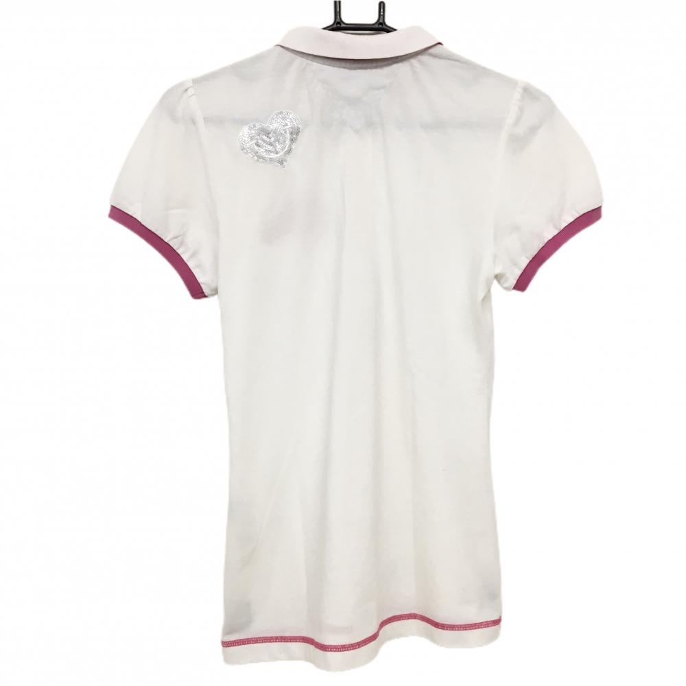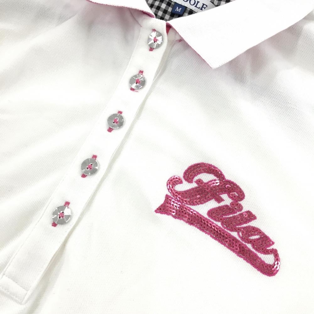 フィラゴルフ 半袖ポロシャツ 白×ピンク スパンコールロゴ レディース M ゴルフウェア FILA GOLF