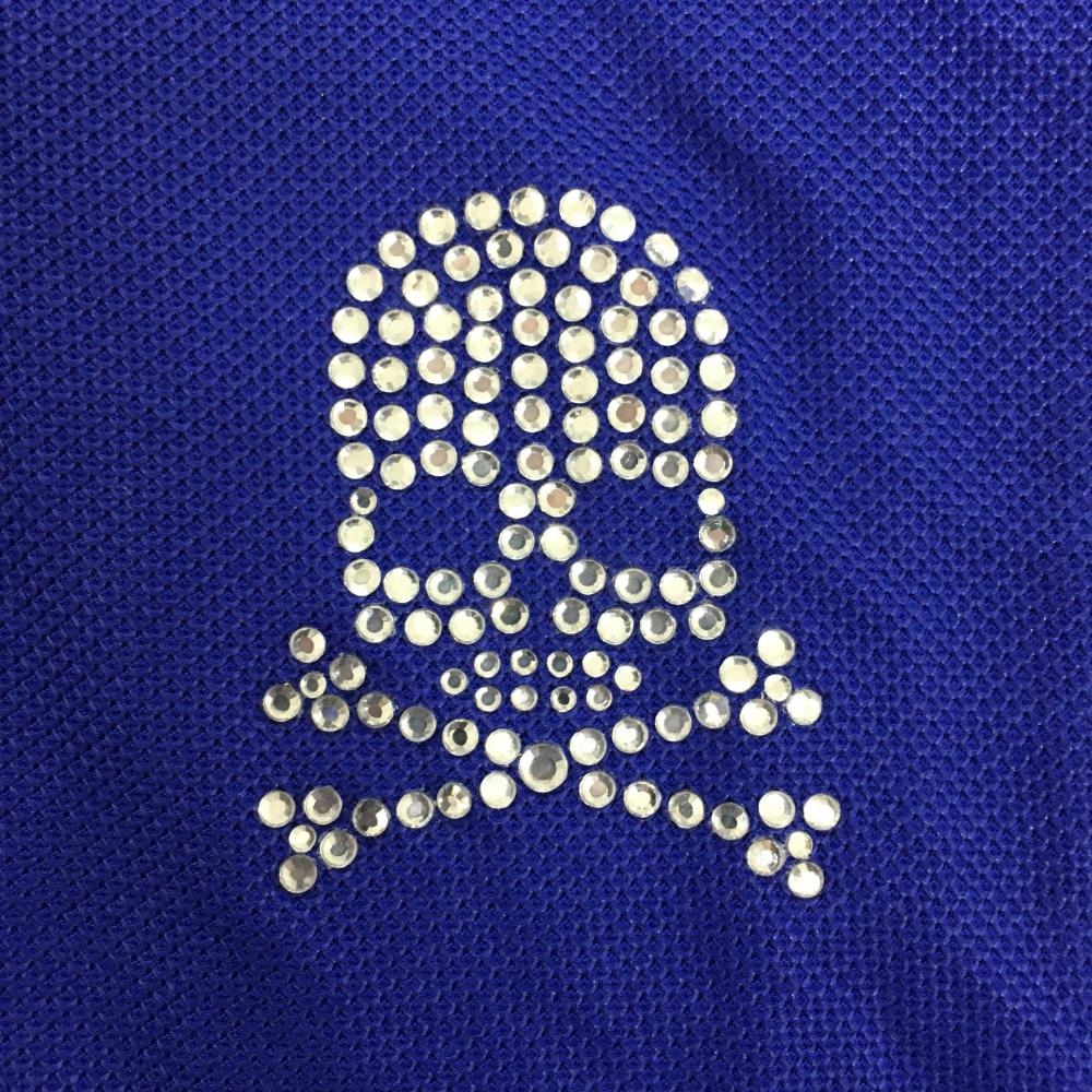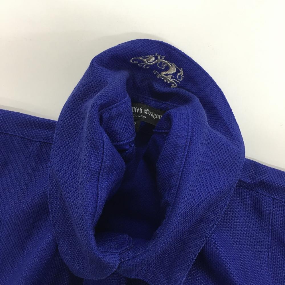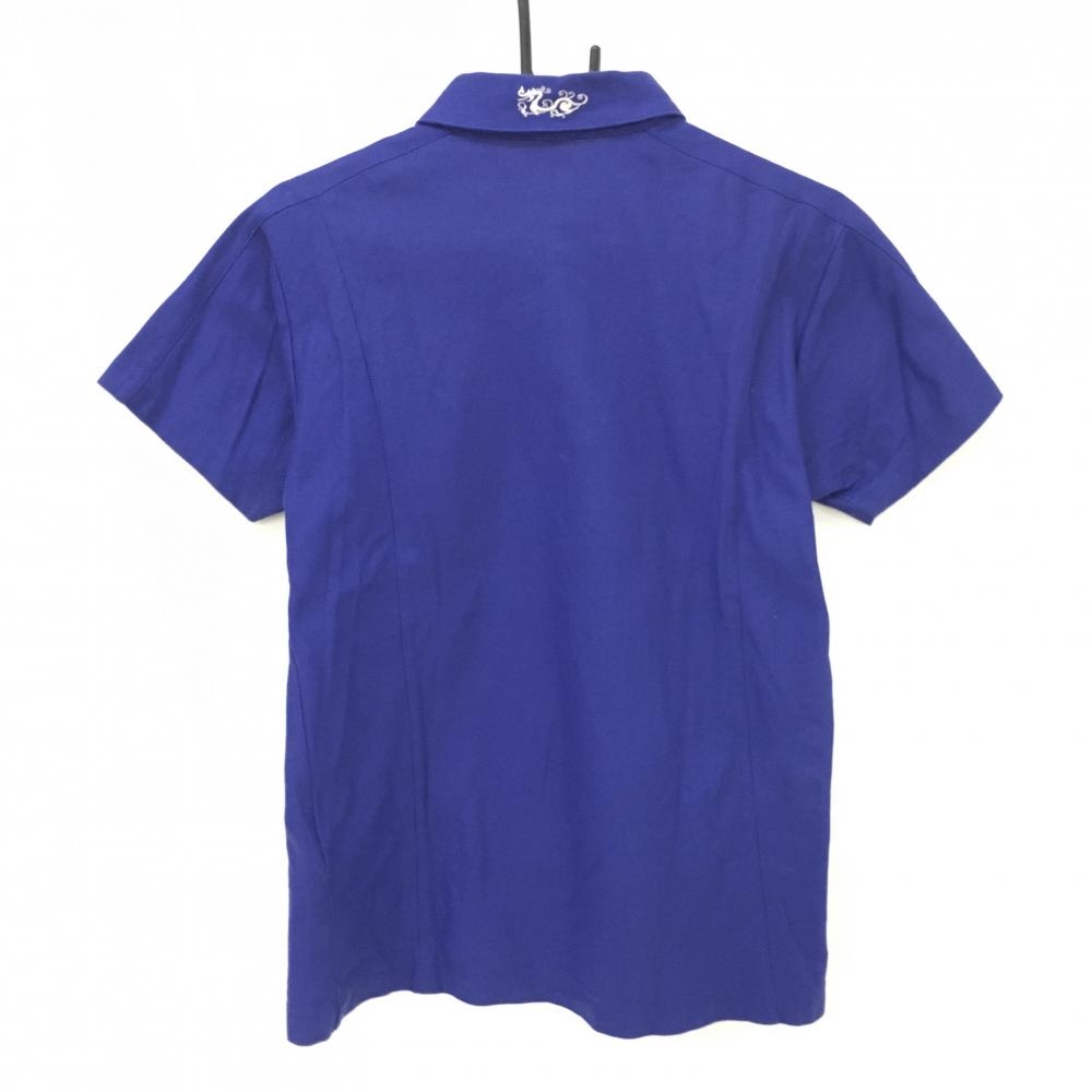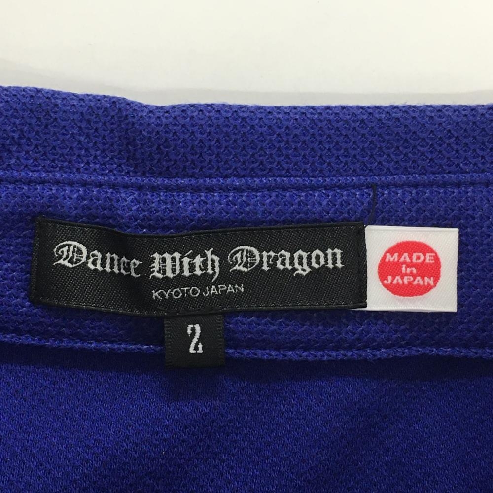 【美品】ダンスウィズドラゴン 半袖ポロシャツ ブルー ラインストーンスカル 襟刺しゅう メンズ 2(M) ゴルフウェア Dance With Dragon