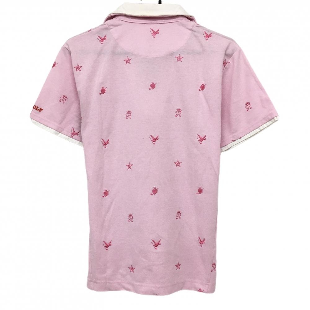 ラッセルノ 半袖ポロシャツ ピンク 刺しゅう総柄 メンズ M ゴルフウェア RUSSELUNO