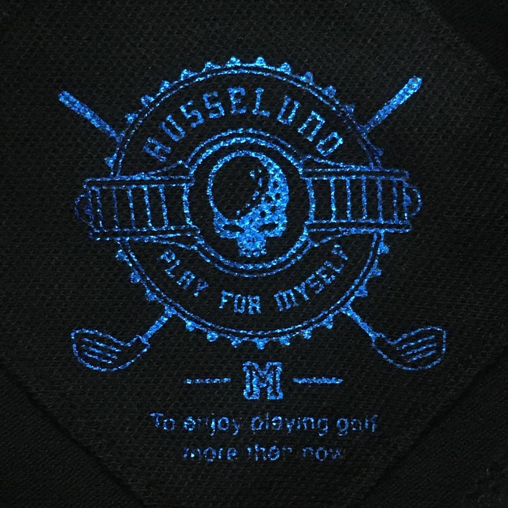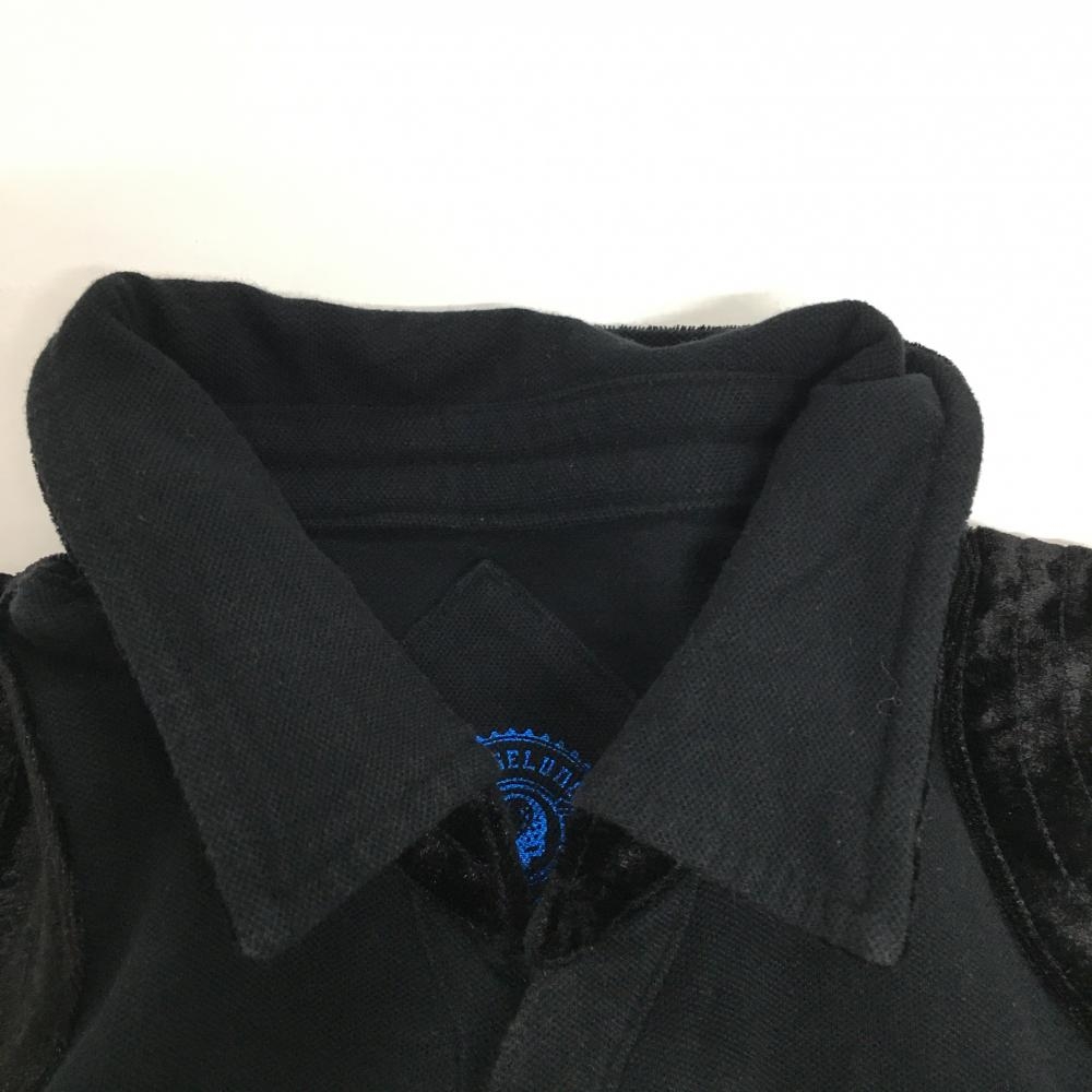ラッセルノ 半袖ポロシャツ 黒 一部ベロア スナップボタン レディース M ゴルフウェア RUSSELUNO