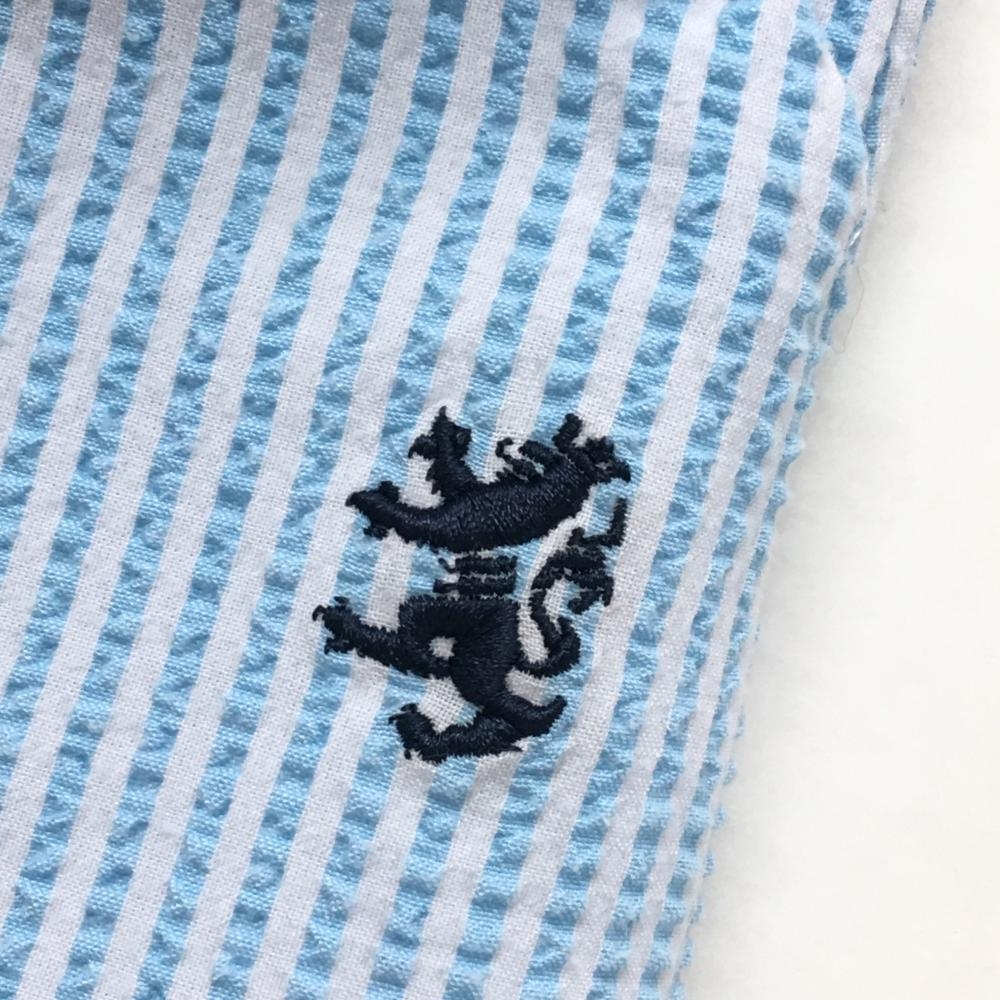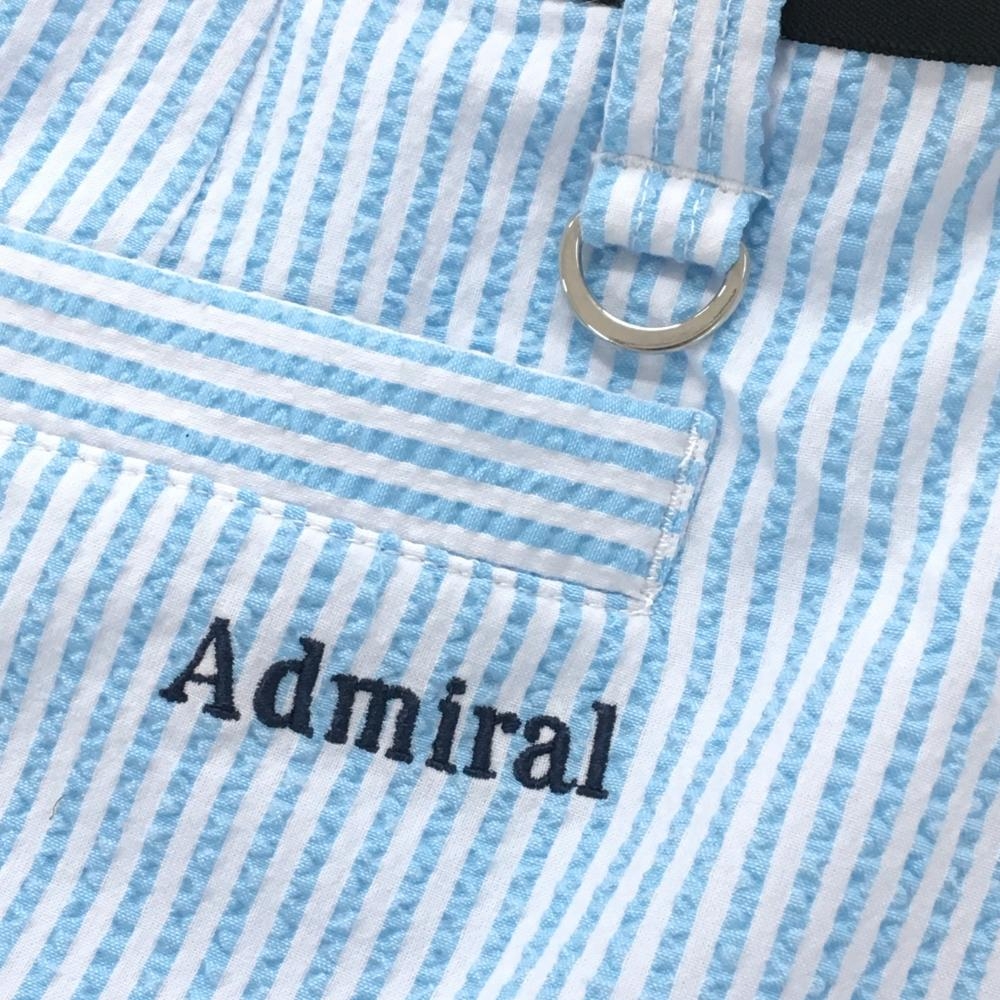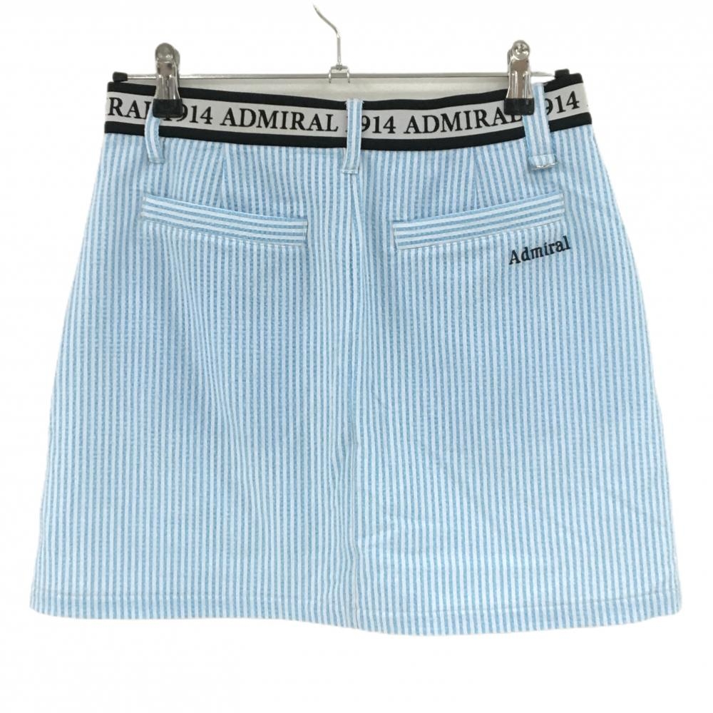 【美品】アドミラル スカート ライトブルー×白 ストライプ柄 サッカー生地 ロゴ刺しゅう レディース M ゴルフウェア Admiral