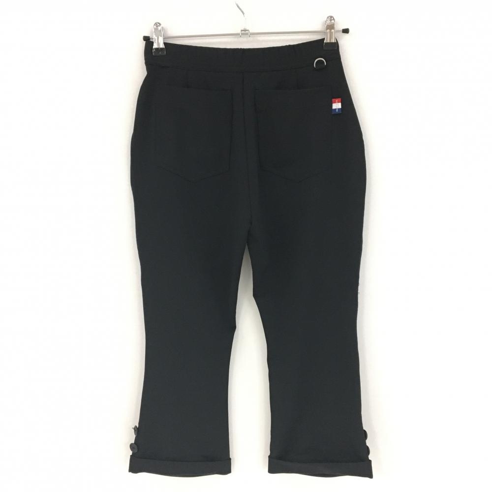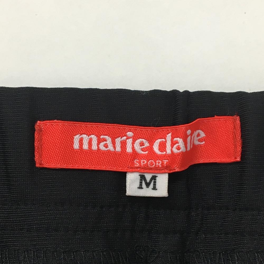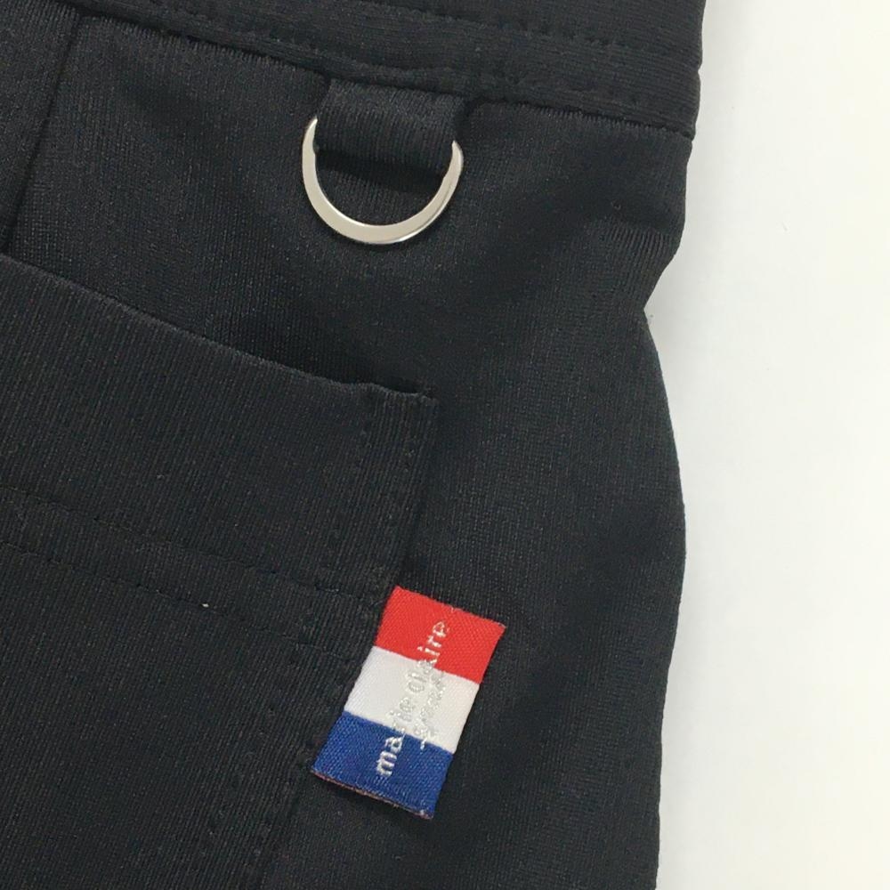 【超美品】マリクレール ストレッチ七分丈パンツ 黒 ストライプ織生地 裾シャーリング レディース M ゴルフウェア marie claire
