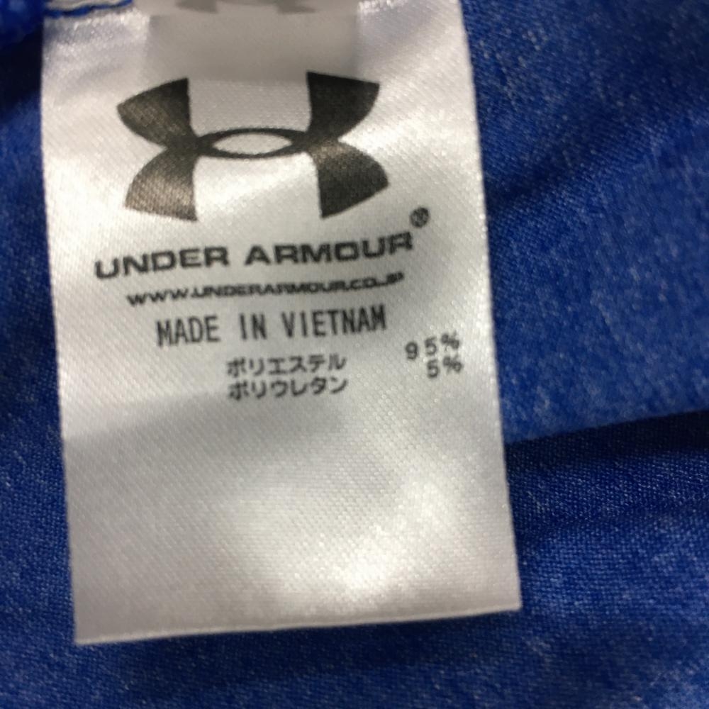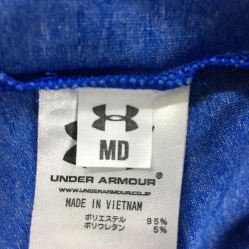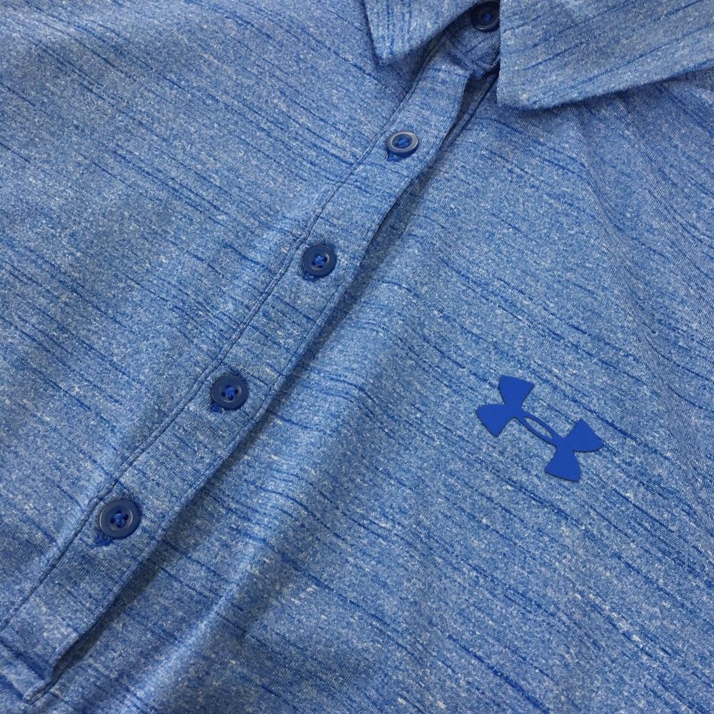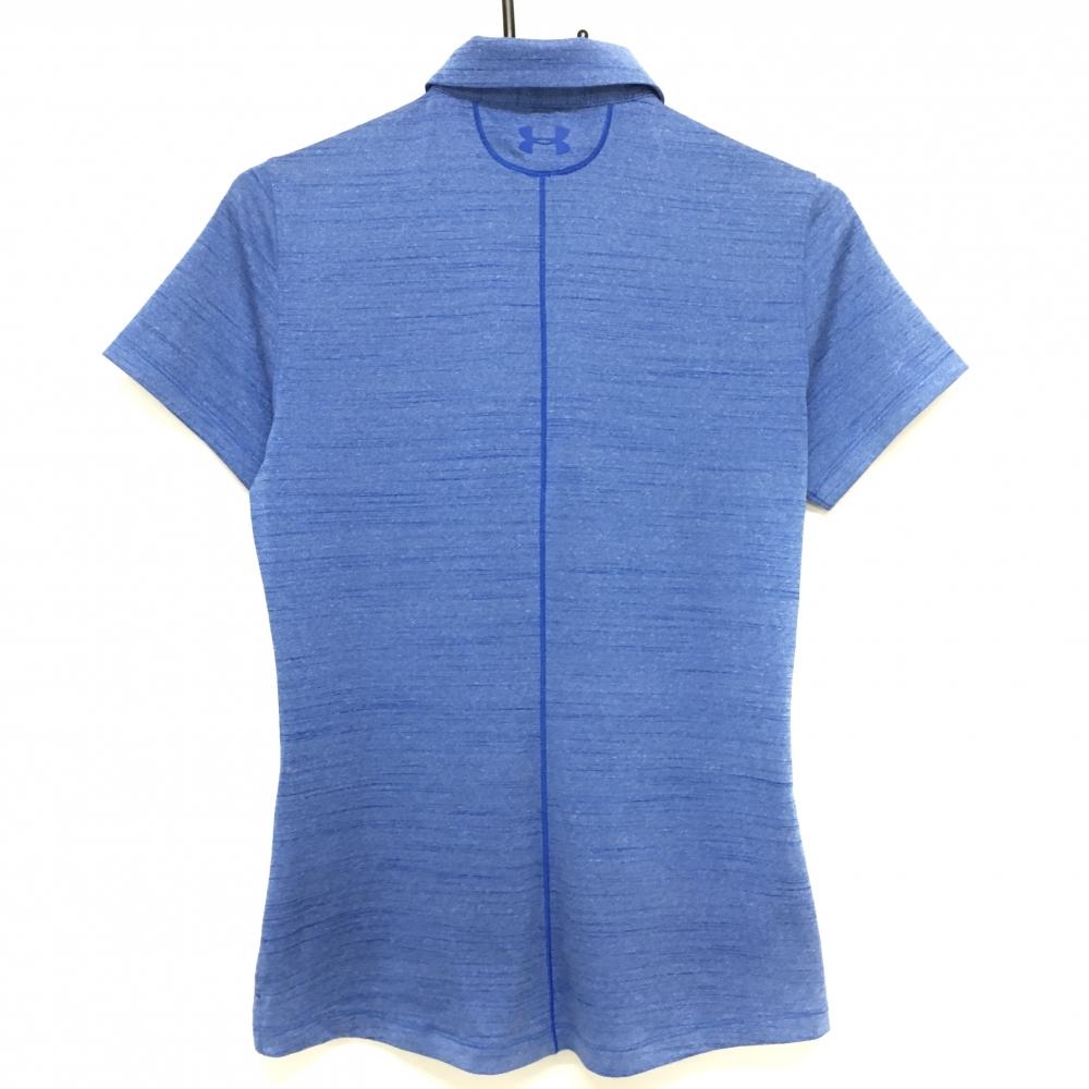 【超美品】アンダーアーマー 半袖ポロシャツ 杢ブルー 胸元ロゴ レディース MD ゴルフウェア UNDER ARMOUR