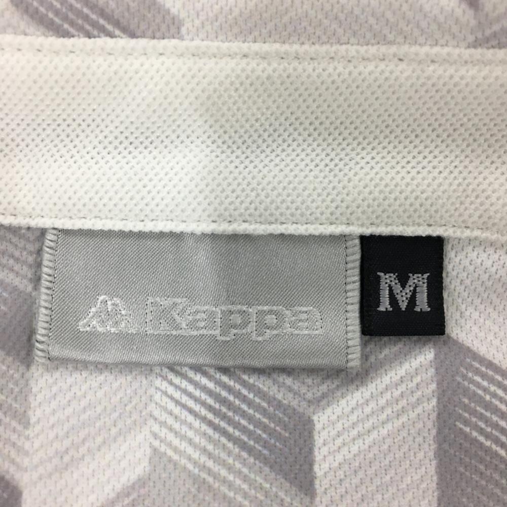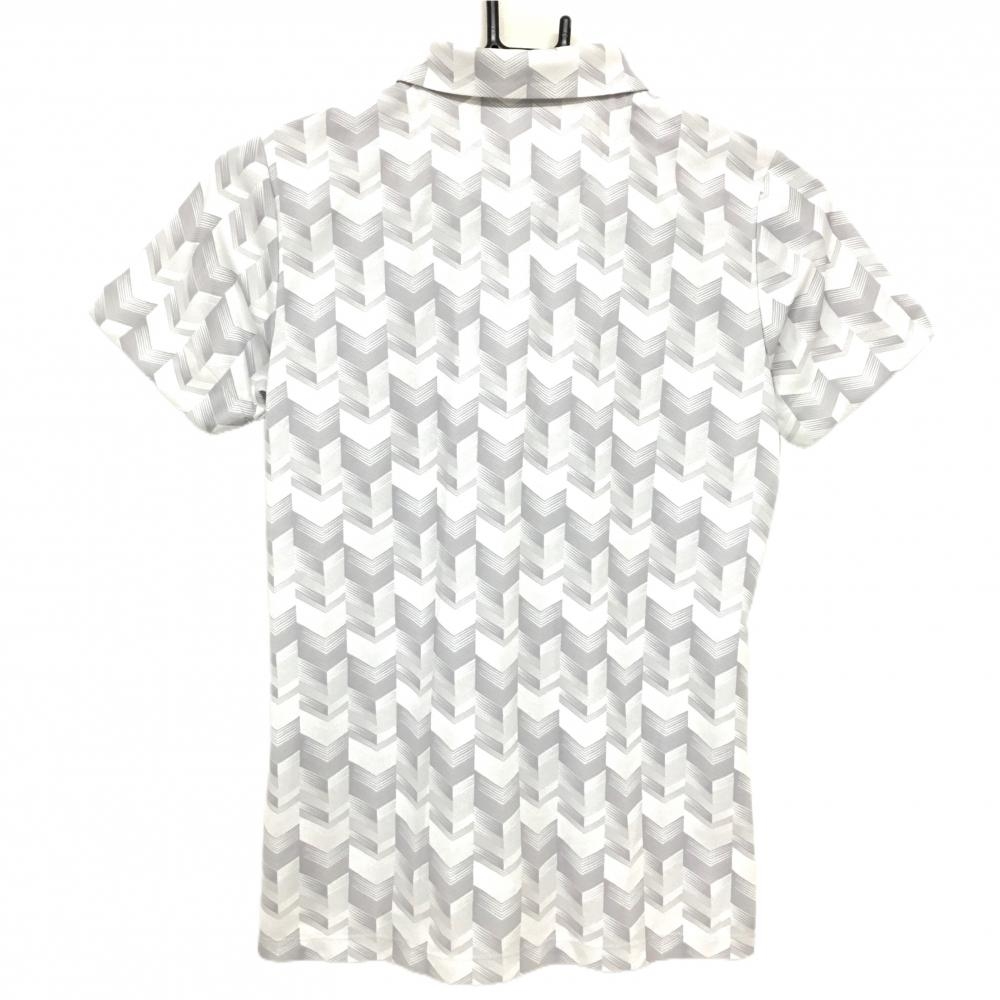 【超美品】カッパ 半袖ポロシャツ 白×グレー 総柄 胸元ロゴ刺しゅう レディース M ゴルフウェア Kappa