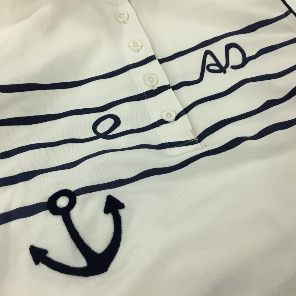 アダバット ノースリーブポロシャツ 白×ネイビー 一部ボーダー レディース 40(L) ゴルフウェア adabat