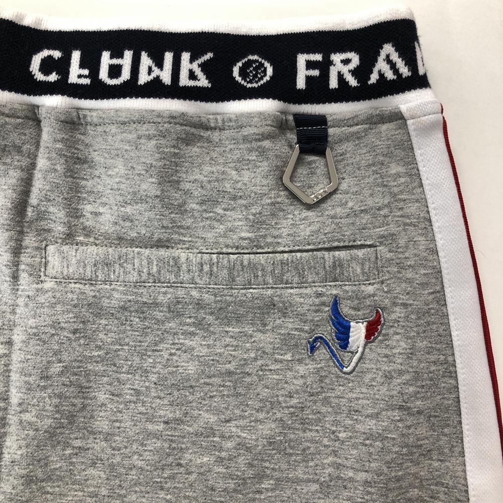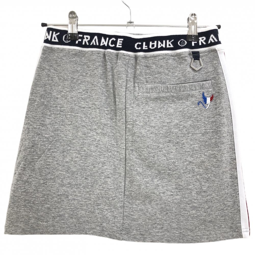 クランク スカート ライトグレー×レッド ウエストゴム サイドライン バックロゴ刺しゅう レディース M ゴルフウェア CLUNK