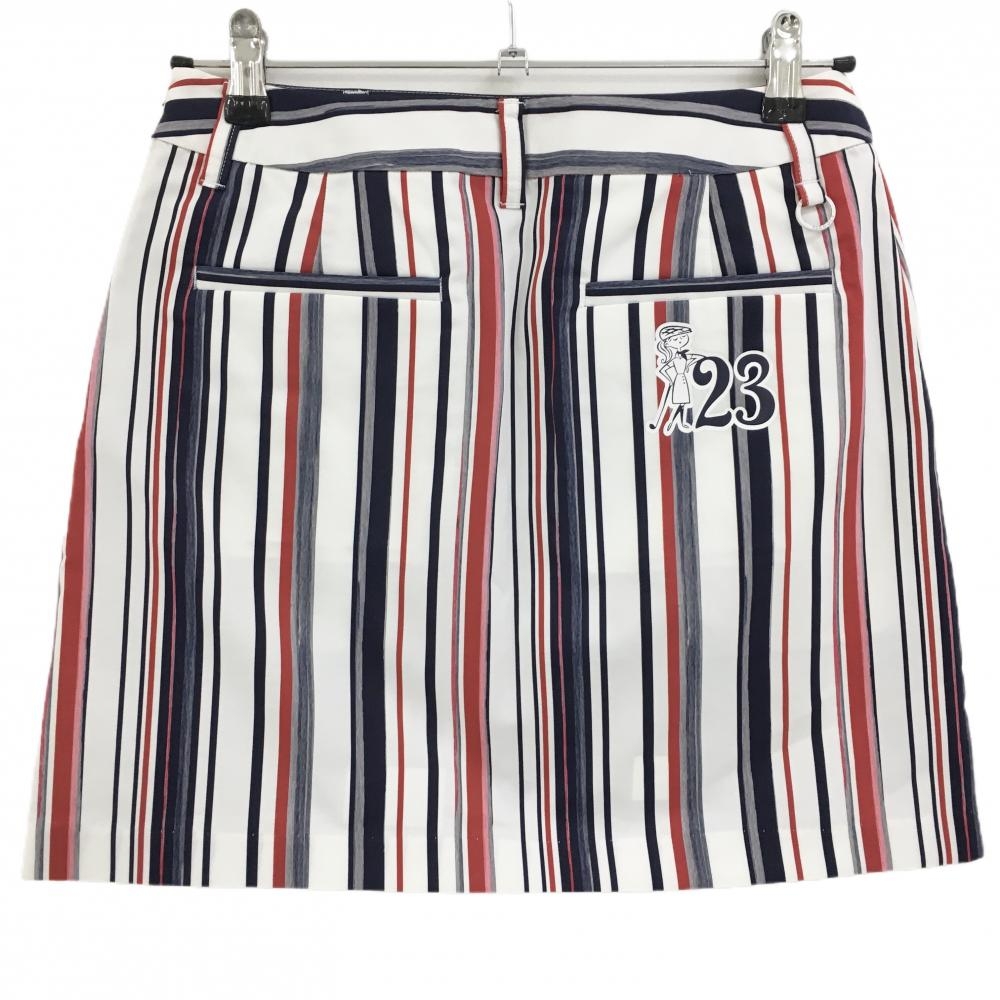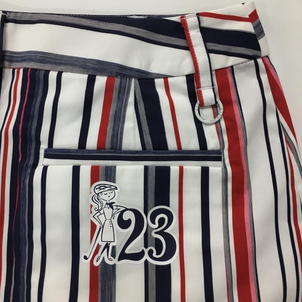 【美品】23区ゴルフ スカート 白×ネイビー×レッド ストライプ ストレッチ レディース 61(S) ゴルフウェア 23区