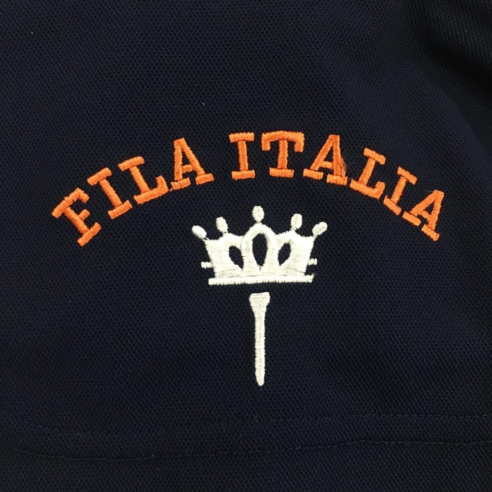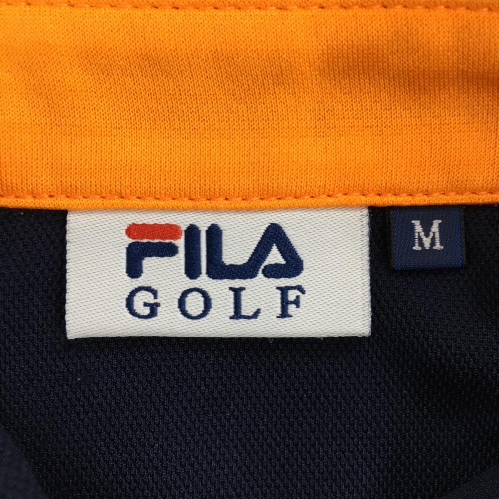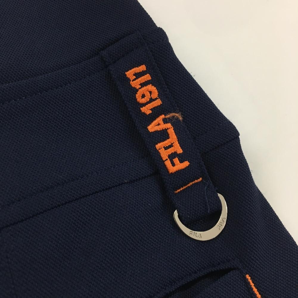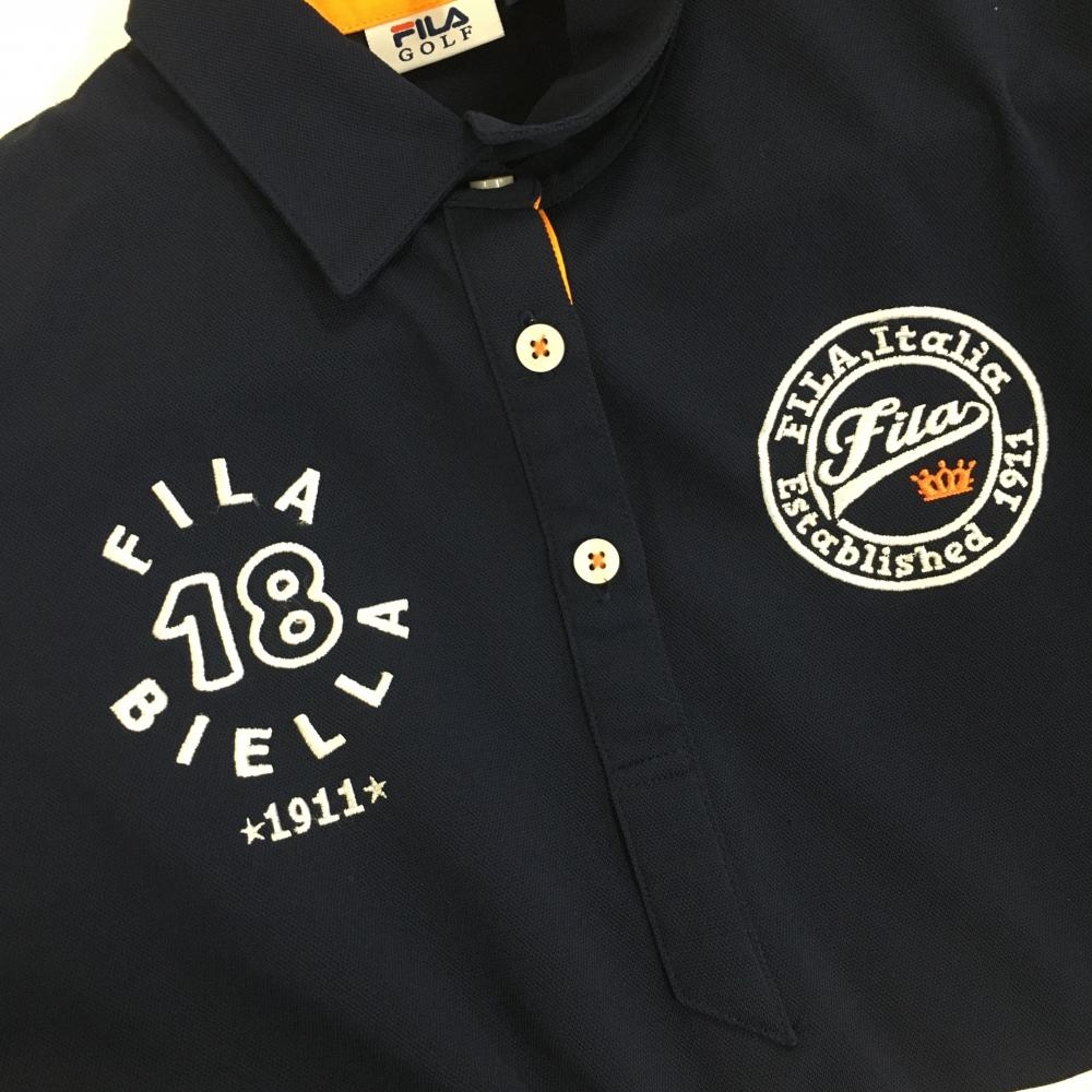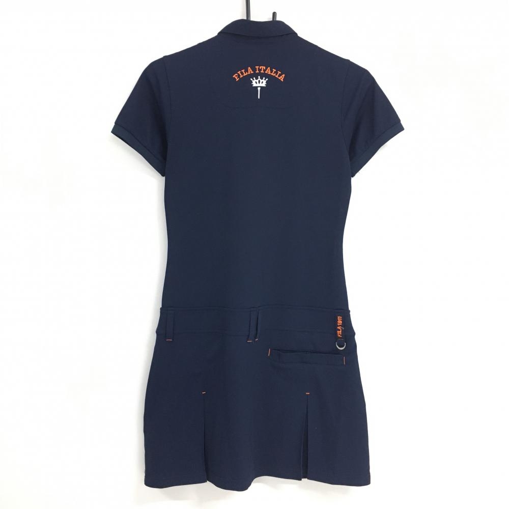 【美品】フィラゴルフ 半袖ポロワンピース ネイビー ボックスプリーツ 胸刺しゅう レディース M ゴルフウェア FILA GOLF