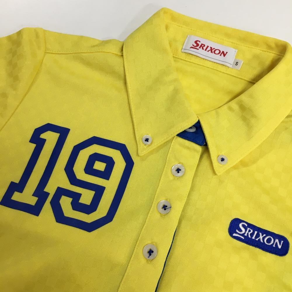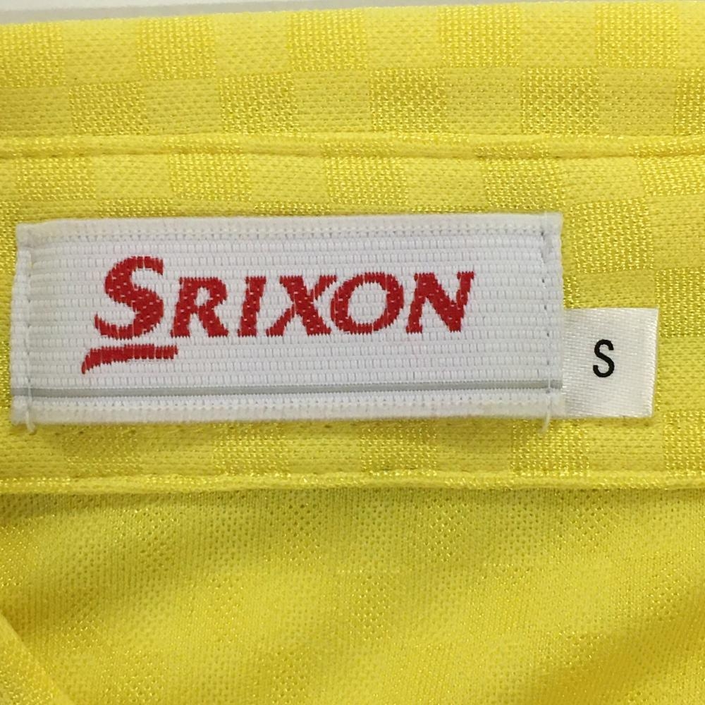 【超美品】スリクソン 半袖ポロシャツ イエロー ブロックチェック織生地 ボタンダウン レディース S ゴルフウェア SRIXON