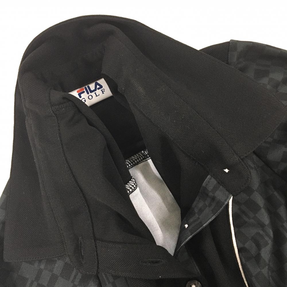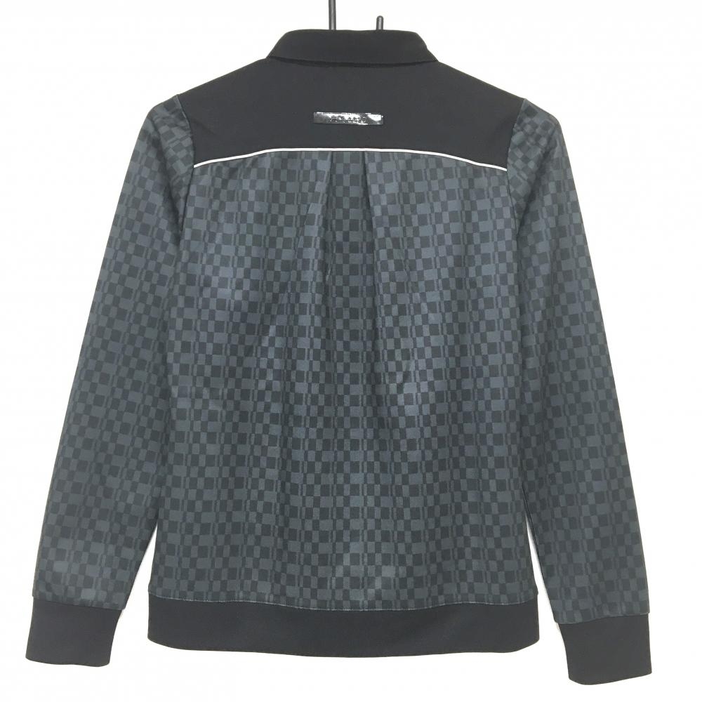 フィラゴルフ 長袖ポロシャツ 黒×グレー 変形格子柄 レディース M ゴルフウェア FILA GOLF