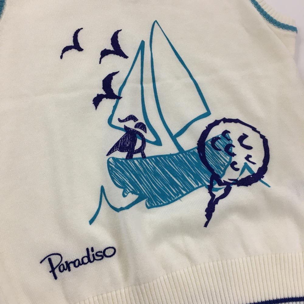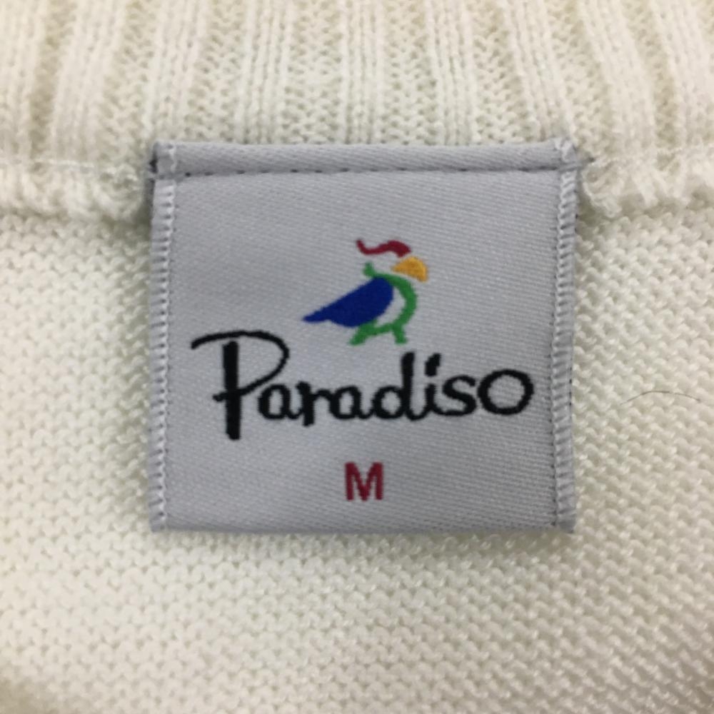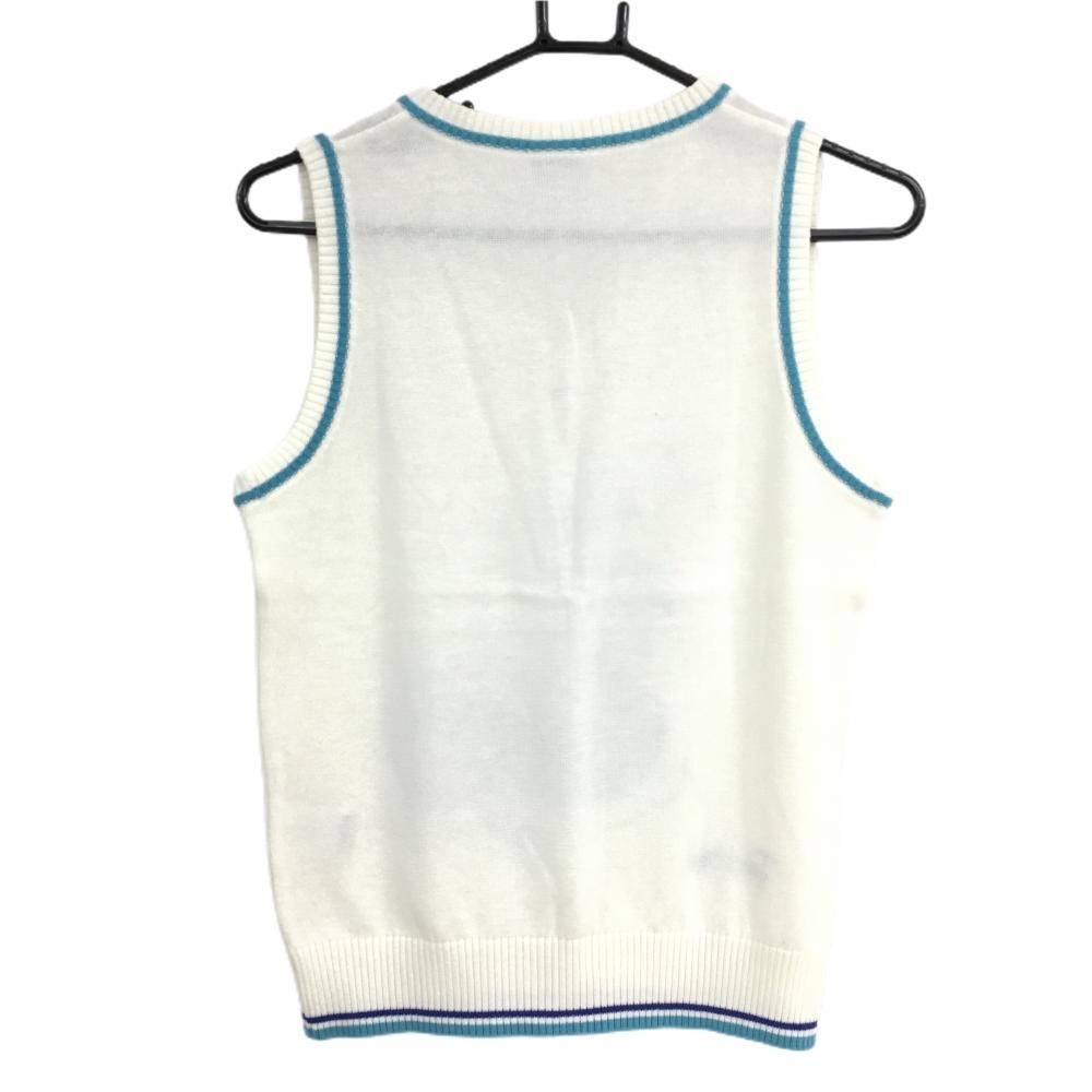【超美品】パラディーゾ ニットベスト 白×ライトブルー アクリル混 Vネック レディース M ゴルフウェア Paradiso