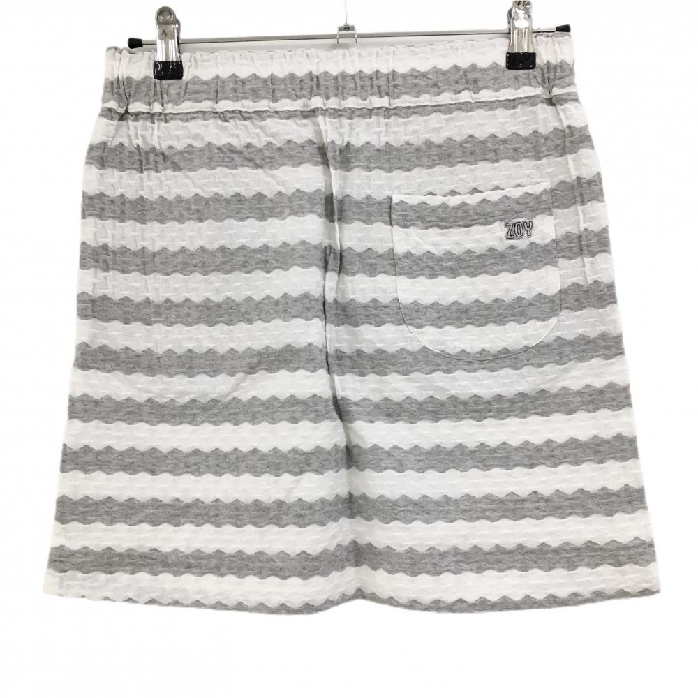 【美品】ゾーイ スカート 白×グレー 波ボーダー ウエストゴム 織生地 レディース 40(L) ゴルフウェア ZOY