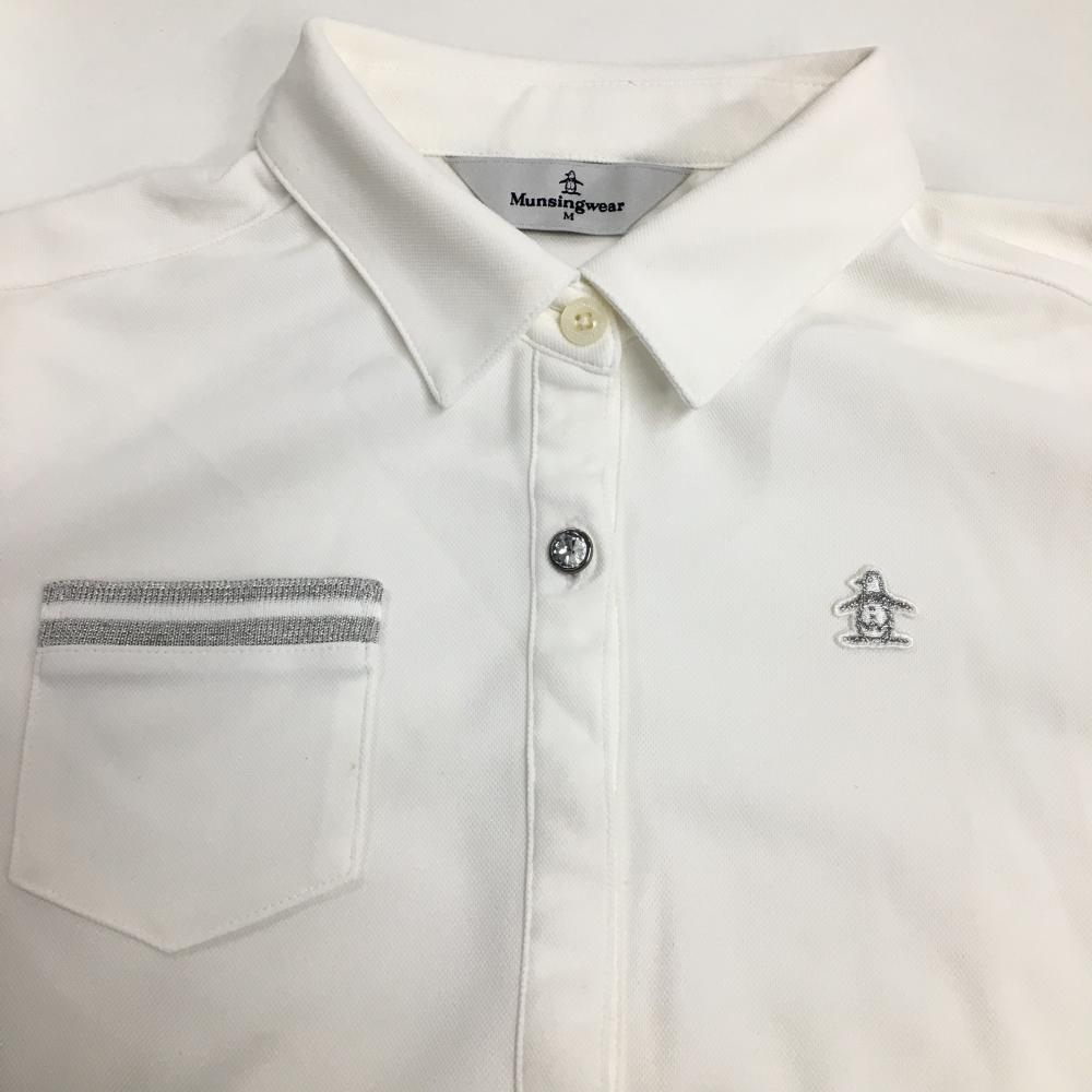 マンシングウェア 半袖ポロシャツ 白×シルバー ロゴワッペン 胸ポケット レディース M ゴルフウェア Munsingwear
