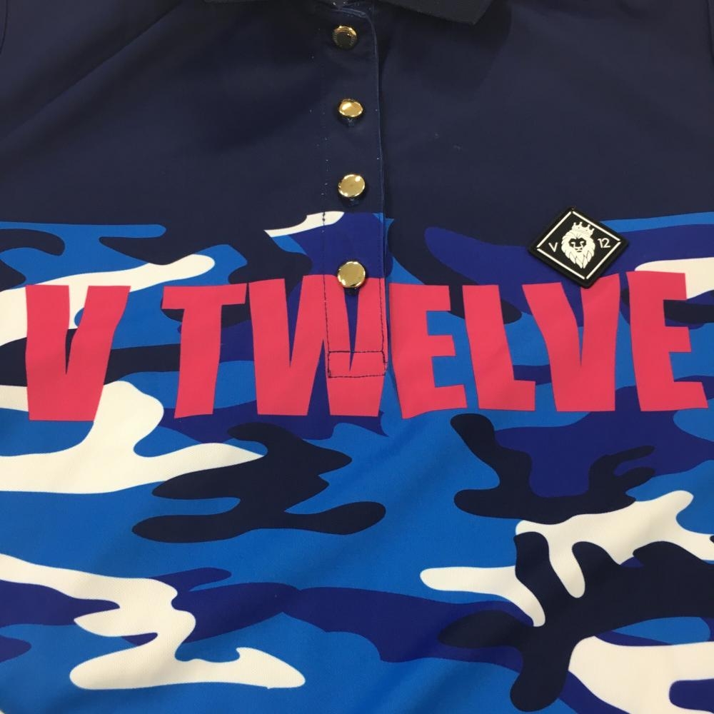 ヴィトゥエルヴ 半袖ポロシャツ ネイビー×ライトブルー 下部カミフラ 迷彩 レディース 1(M) ゴルフウェア V12