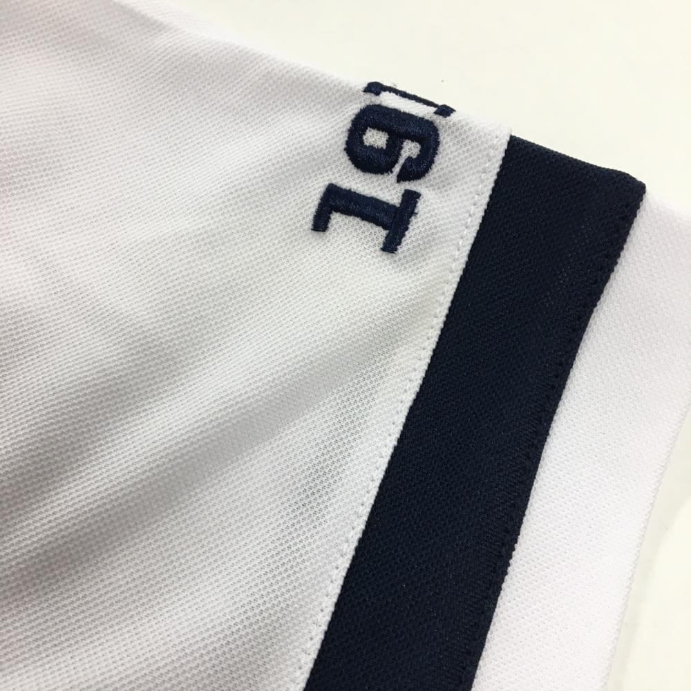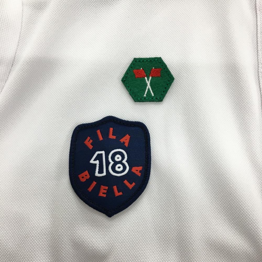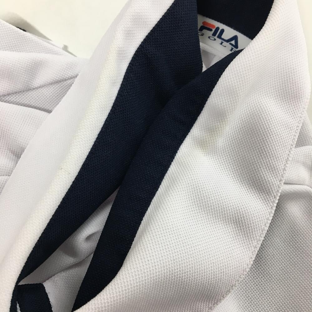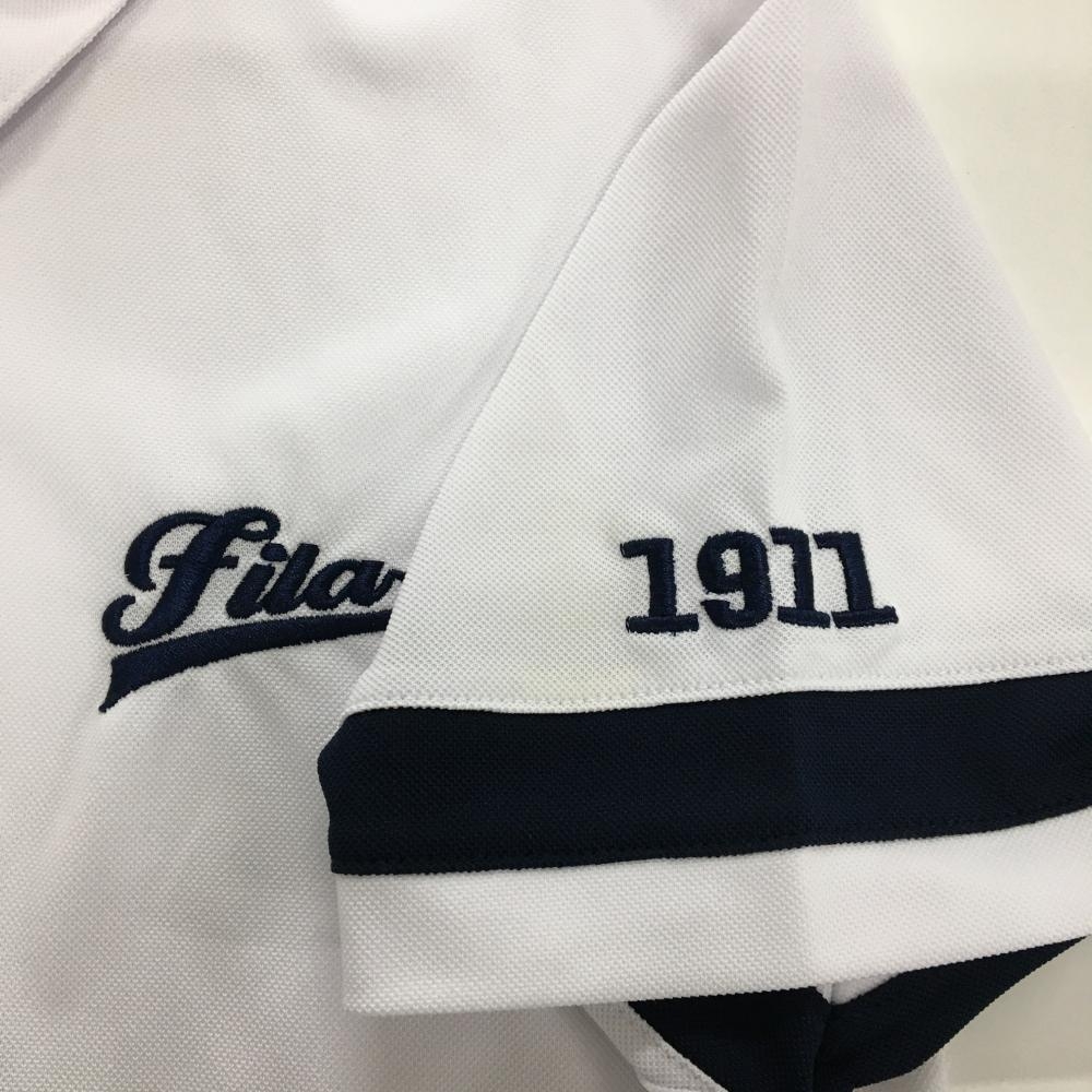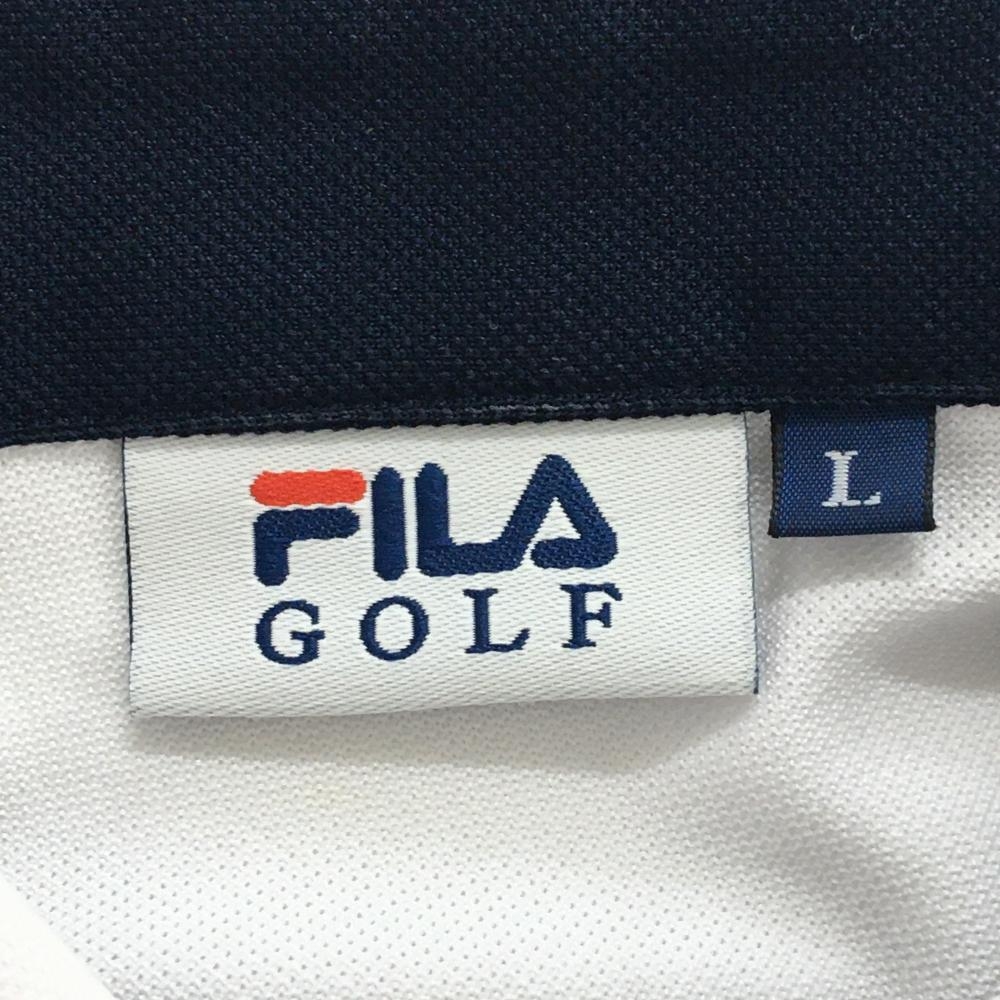 フィラゴルフ 半袖ポロシャツ 白×ネイビー 胸ワッペン レディース L ゴルフウェア FILA GOLF