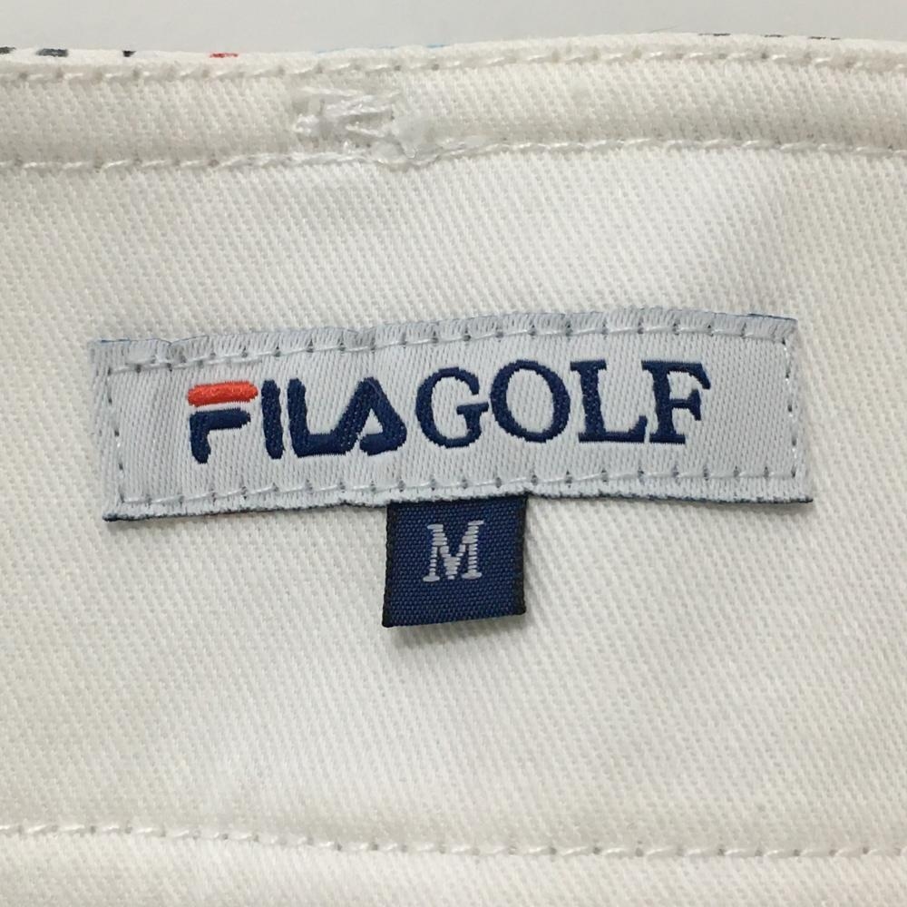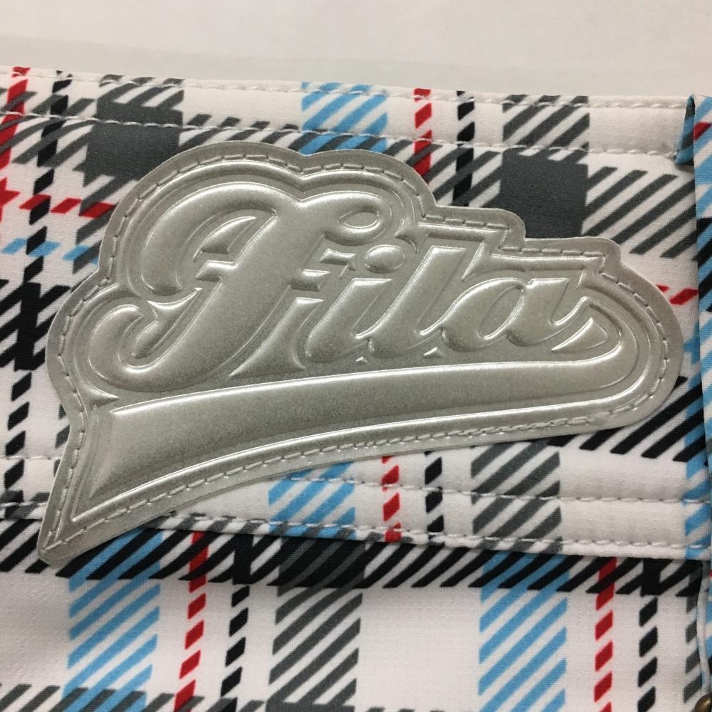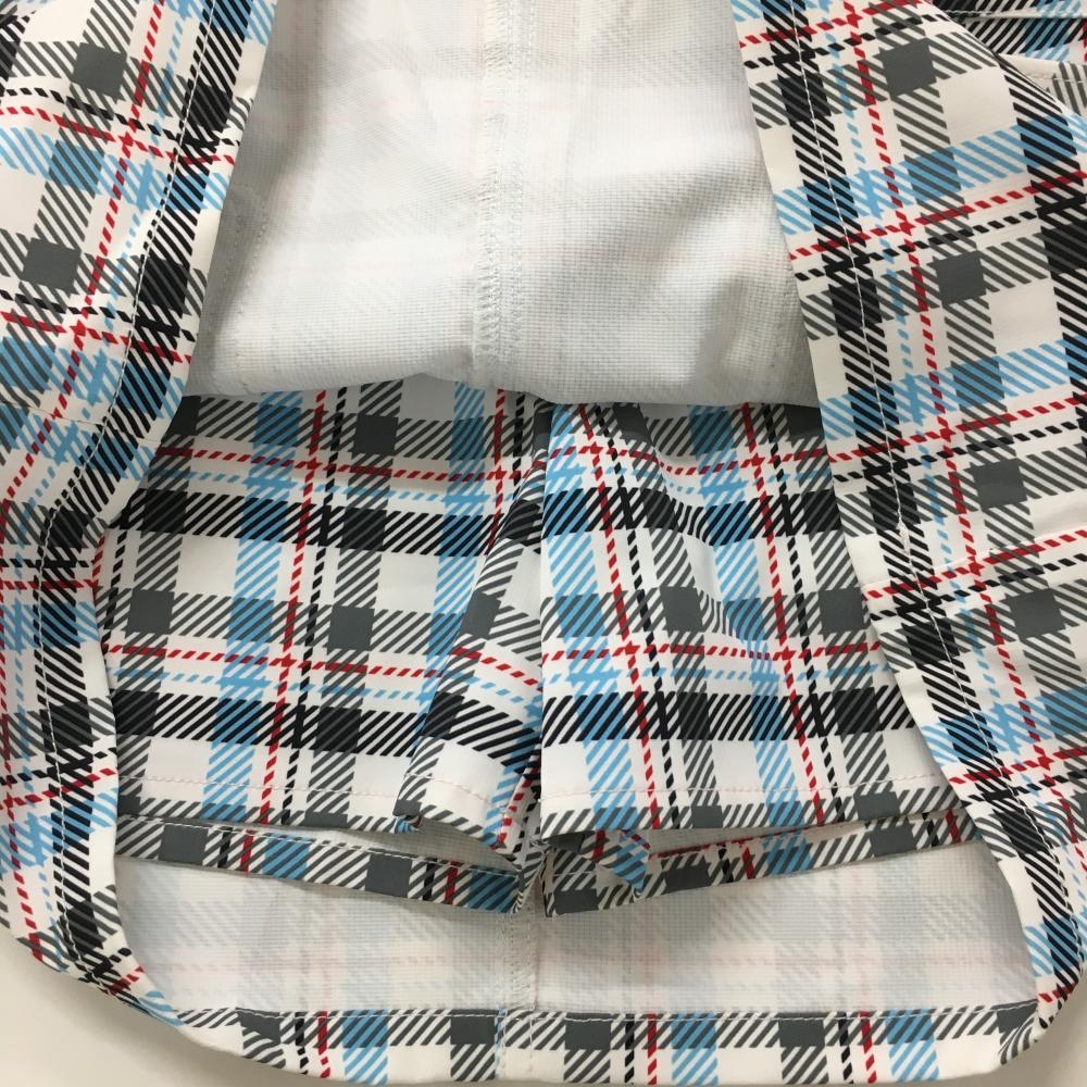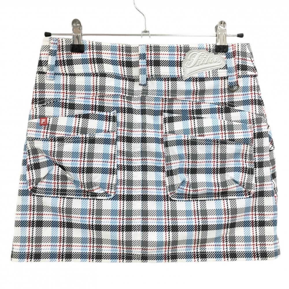【超美品】フィラゴルフ スカート 白×ライトブルー チェック ストレッチ 内側インナーパンツ レディース M ゴルフウェア FILA GOLF