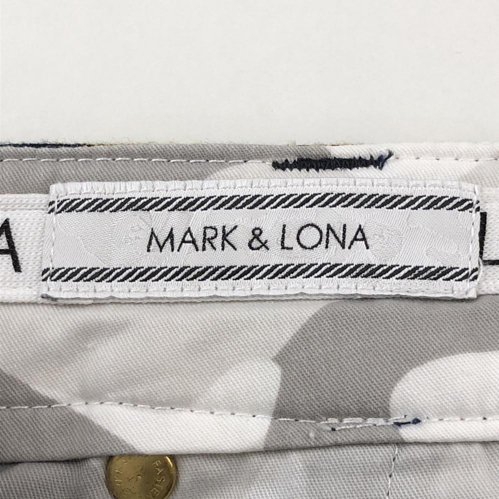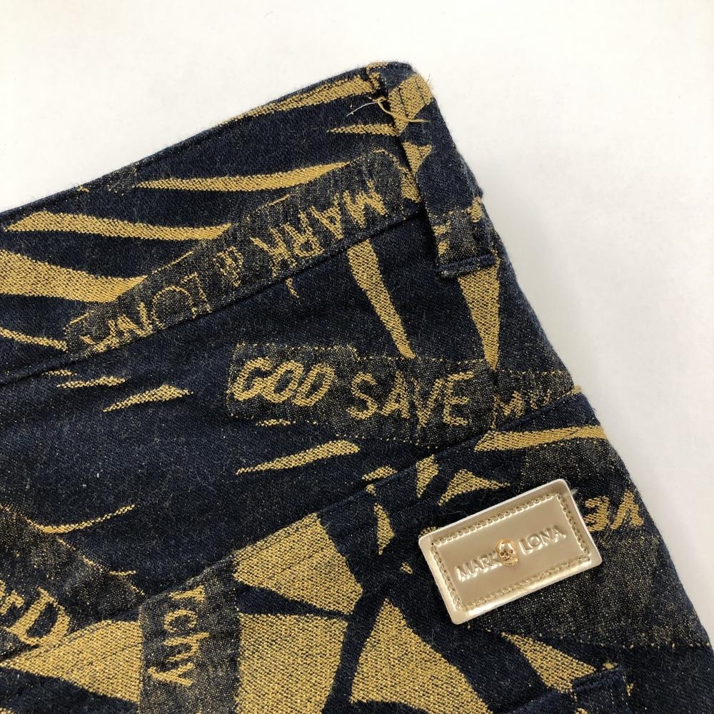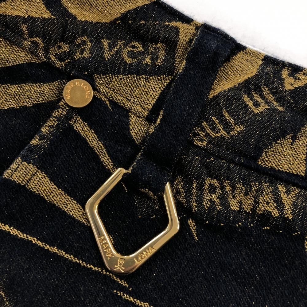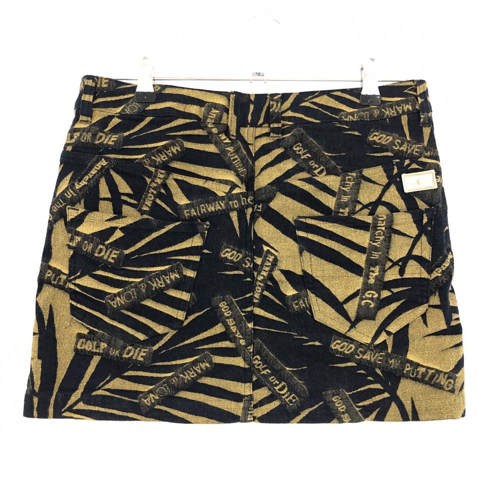 【美品】マークアンドロナ スカート ゴールド×ダークネイビー 総柄 裏地メッシュ レディース M ゴルフウェア MARK&LONA