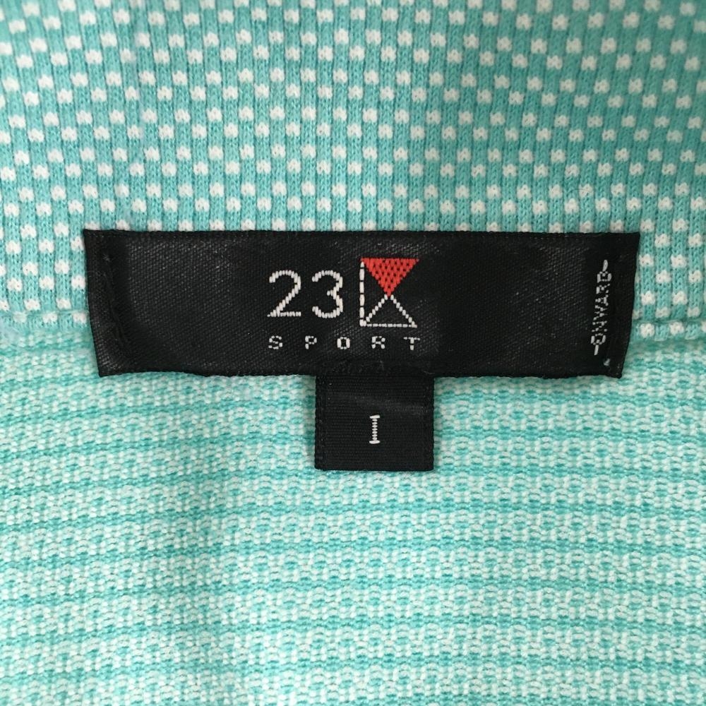 23区スポーツ 半袖ハイネックシャツ ライトブルー×白 ドット柄 ハーフジップ サイドメッシュ レディース I(M) ゴルフウェア 23区