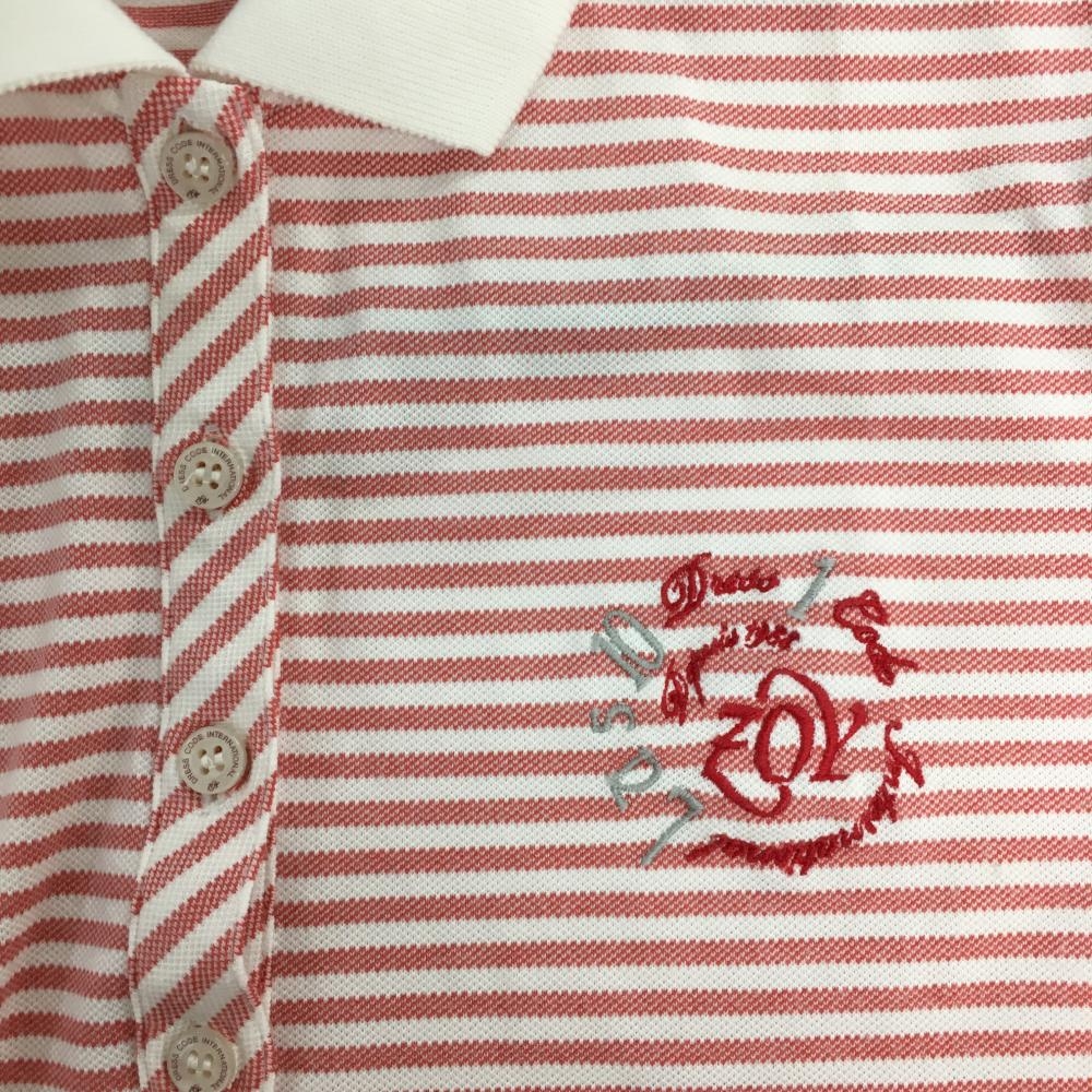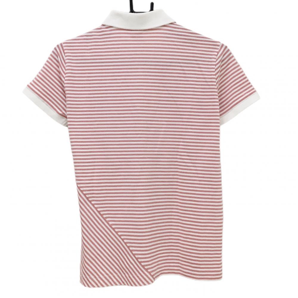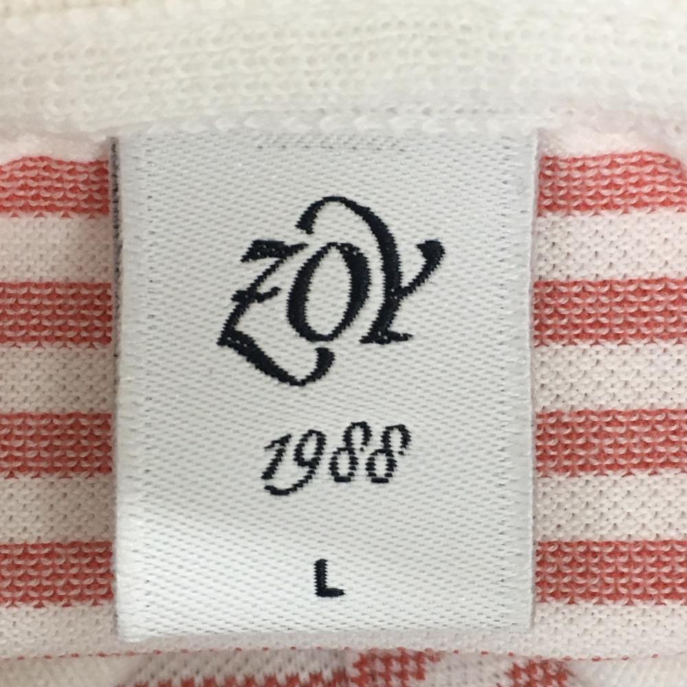 ゾーイ 半袖ポロシャツ 白×レッド ボーダー ロゴ刺しゅう レディース L ゴルフウェア ZOY