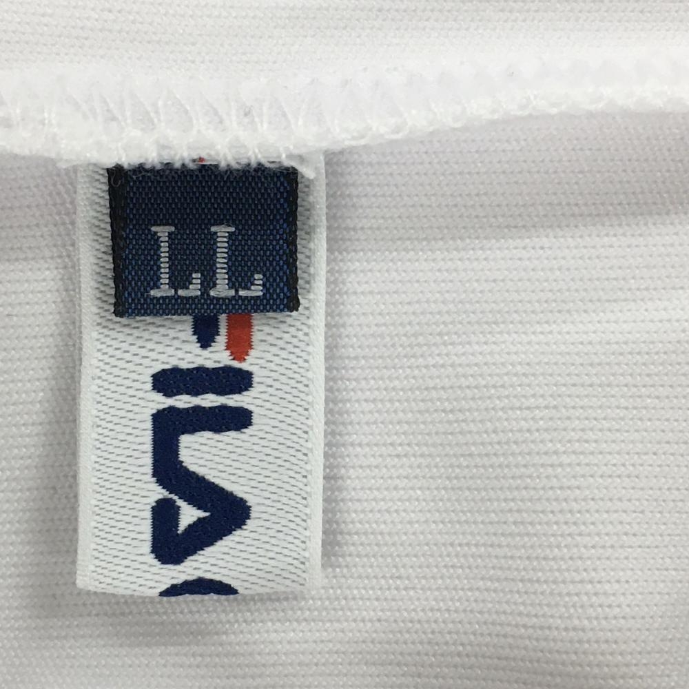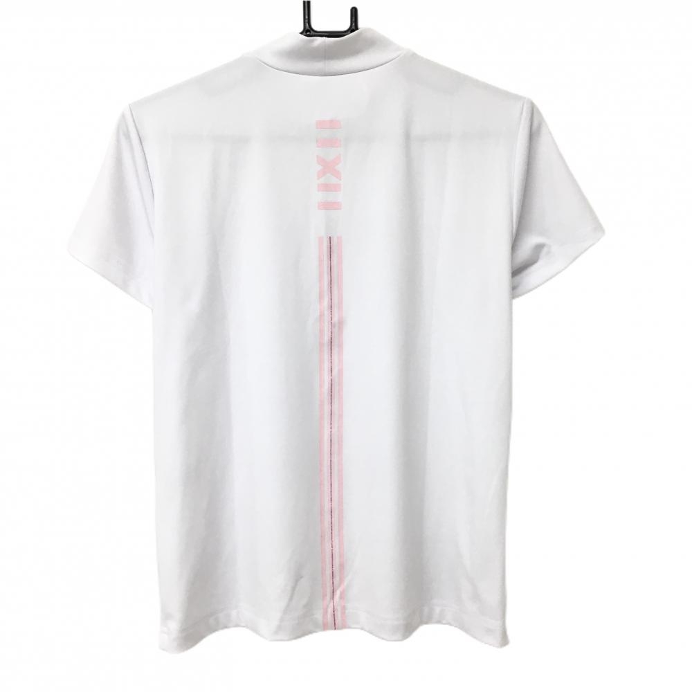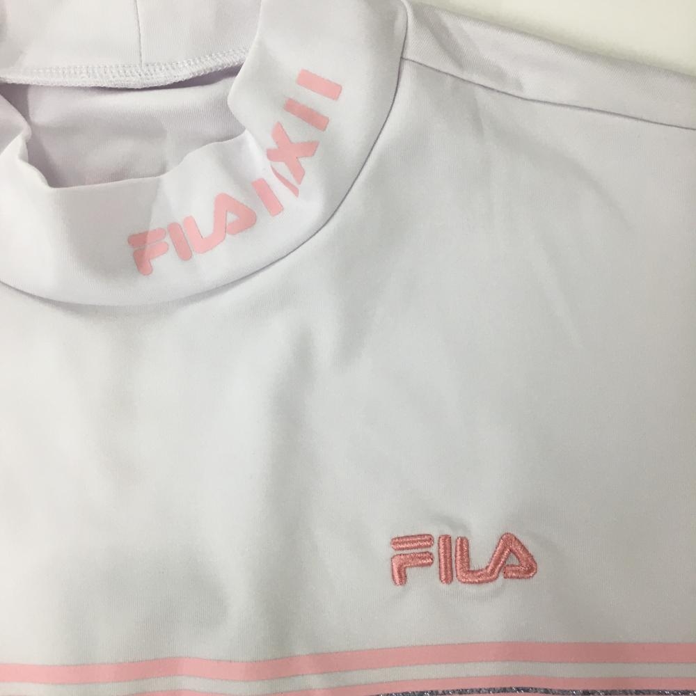 【超美品】フィラゴルフ 半袖ハイネックシャツ 白×ピンク 胸元ライン ロゴプリント レディース LL ゴルフウェア FILA GOLF