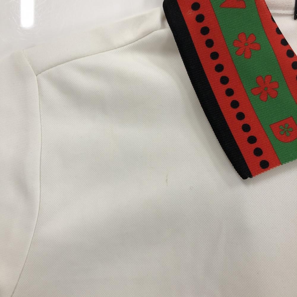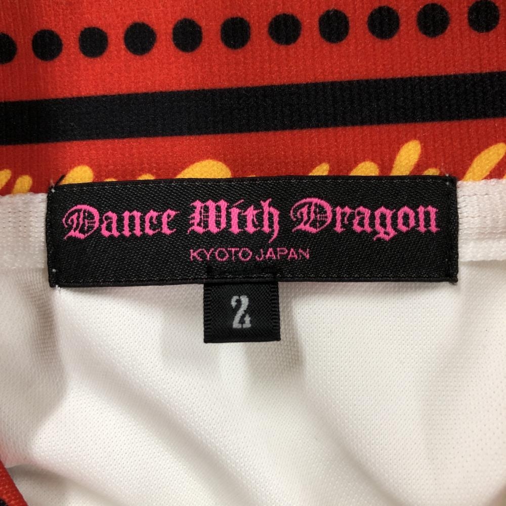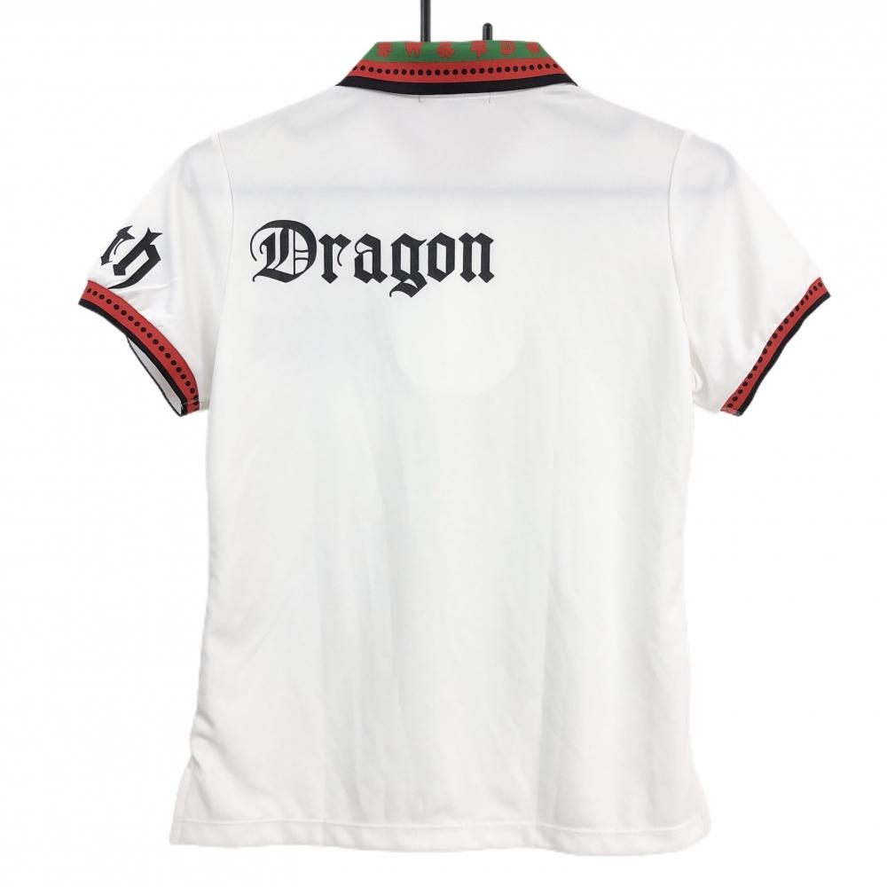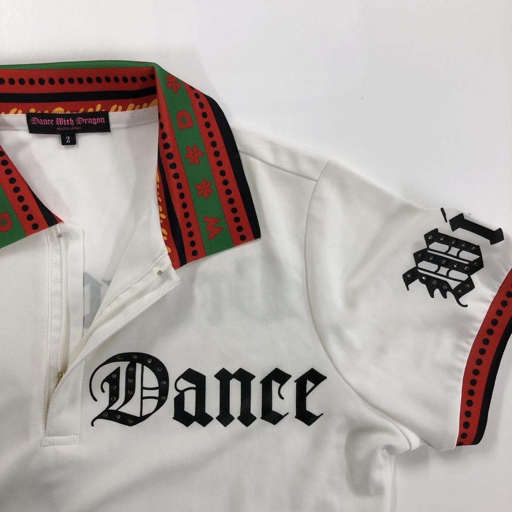 ダンスウィズドラゴン 半袖ポロシャツ 白×レッド×黒 襟袖口ドット ハーフジップ レディース 2(M) ゴルフウェア Dance With Dragon