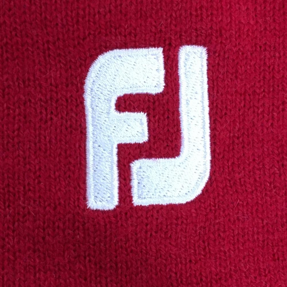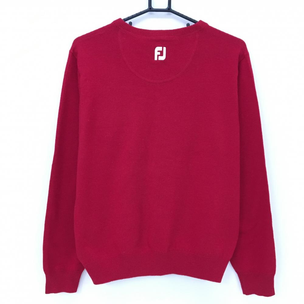 【超美品】フットジョイ セーター レッド×白 ウール100% ニット Vネック メンズ M ゴルフウェア FootJoy