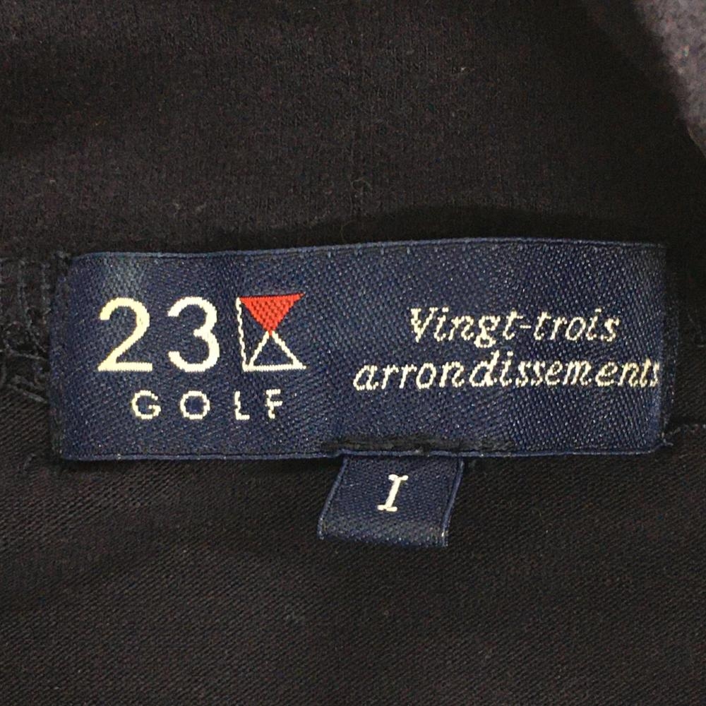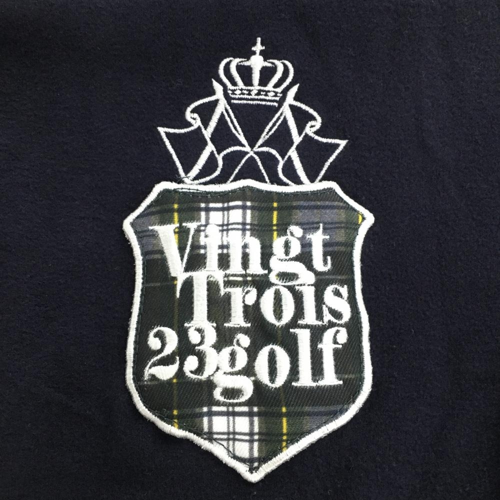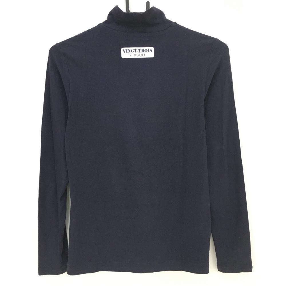 23区ゴルフ 長袖ハイネックシャツ ネイビー×白 表微起毛 ワッペン 袖ロゴプリント レディース I(M) ゴルフウェア 23区